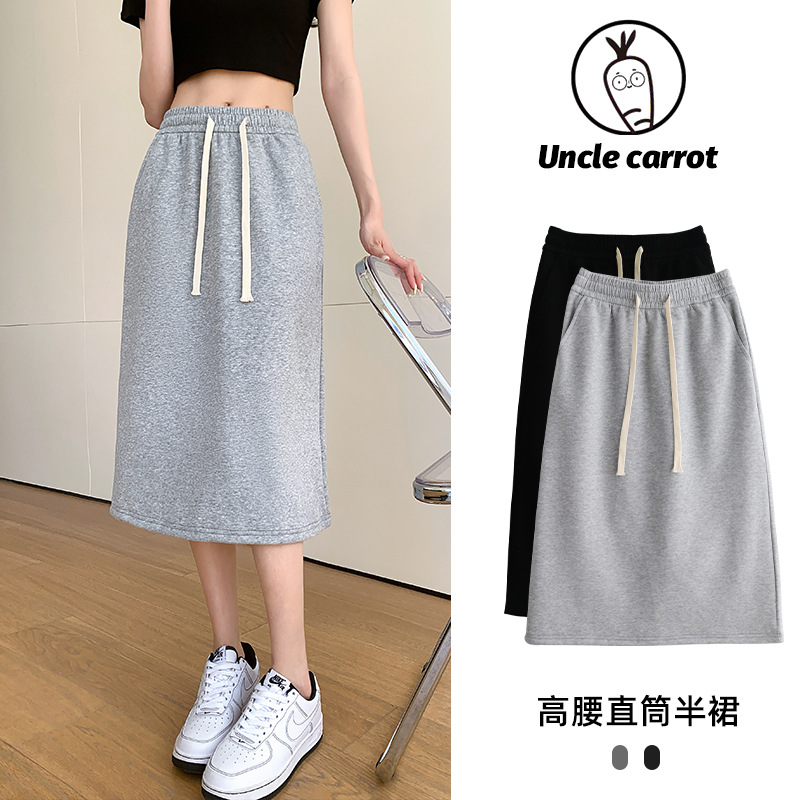直筒半身裙女春夏新款灰色高腰显瘦休闲裙大码包臀中长裙