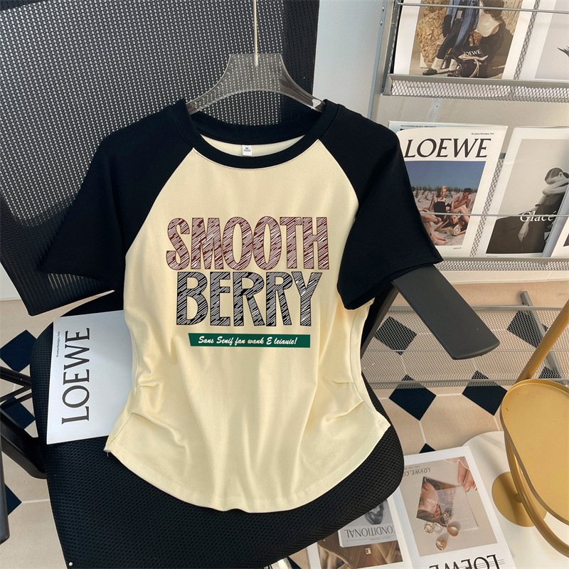 美式复古插肩袖T恤女收腰显瘦短款上衣ins潮夏季宽松韩版短袖体桖
