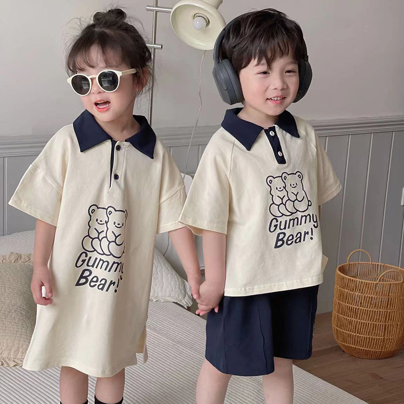 23539里南希24年夏季新款 女童短袖卫衣裙POLO领针织卡通印花