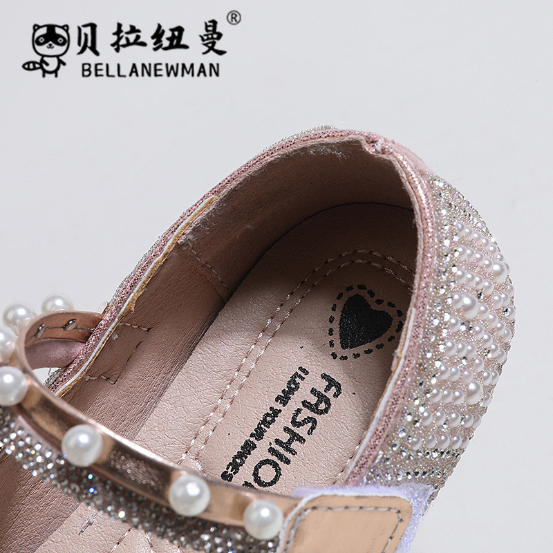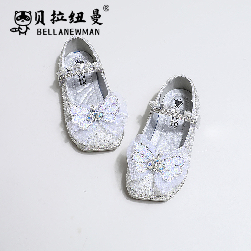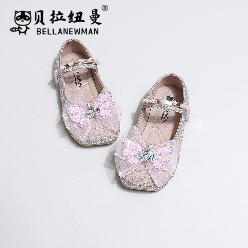 儿童方头水钻小皮鞋春秋新款小童单鞋女童蝴蝶结公主鞋潮