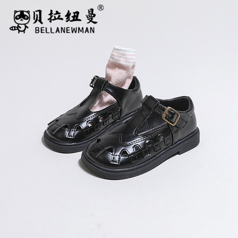 儿童黑色皮鞋春秋新款韩版女童软底公主鞋透气镂空单鞋中大童