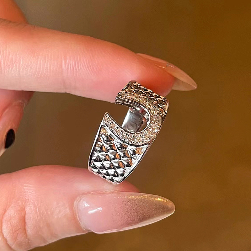 小红书同款意大利老钱风U型马蹄菱格满钻柳丁戒指女轻奢重工指环