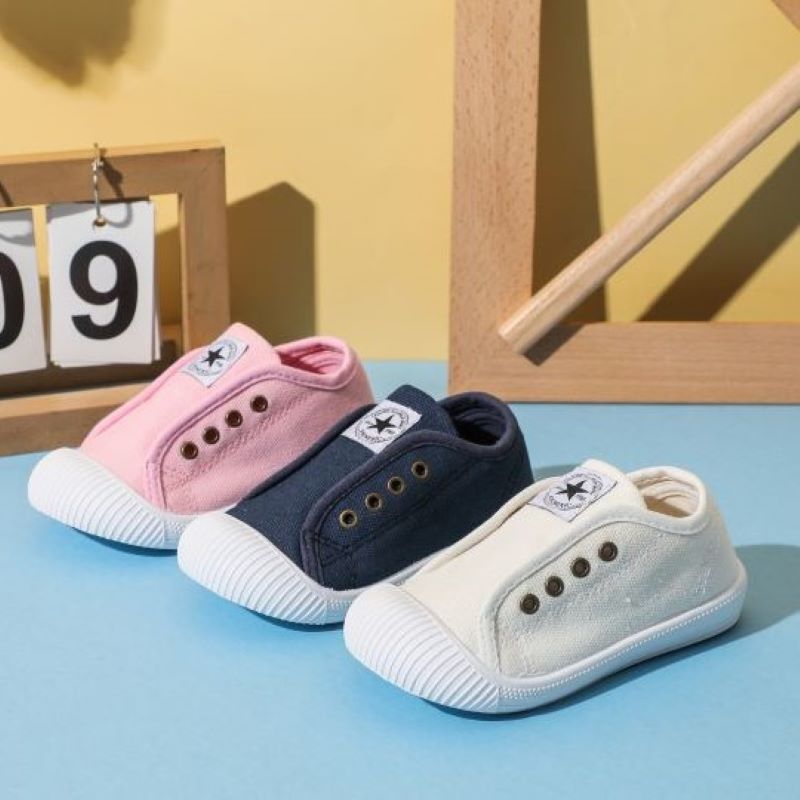 小白鞋儿童帆布鞋韩版休闲软底魔术贴女童男童一脚蹬幼儿园室内鞋