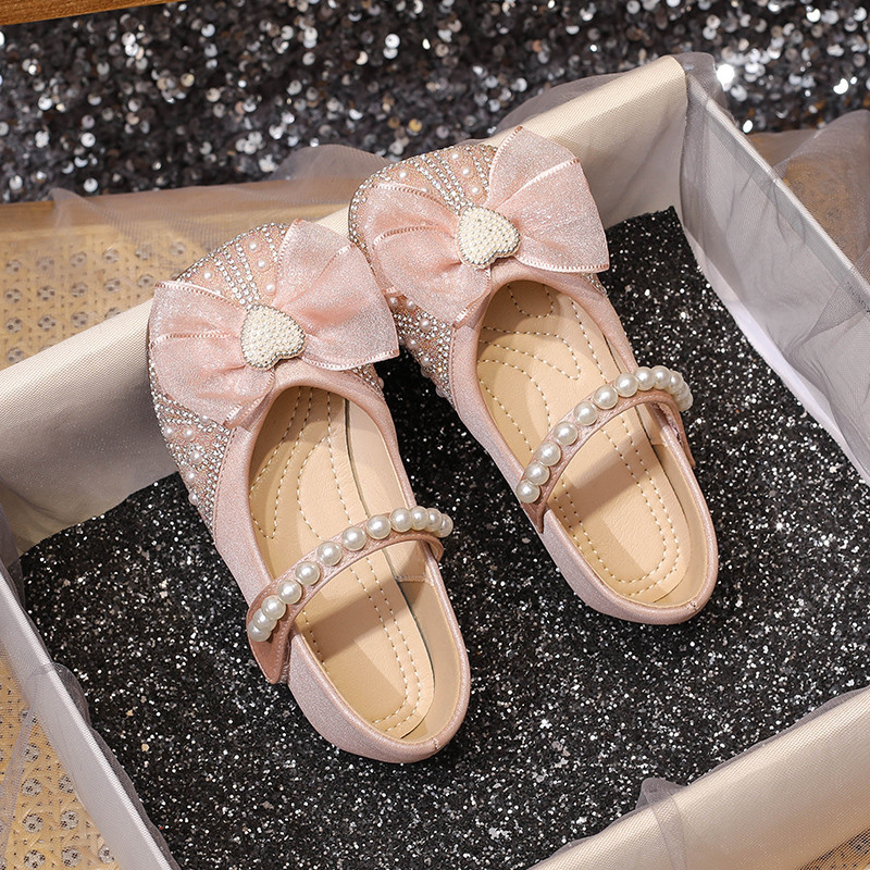 女童小皮鞋年夏季新款小女孩软底水晶公主鞋女童蝴蝶结单鞋