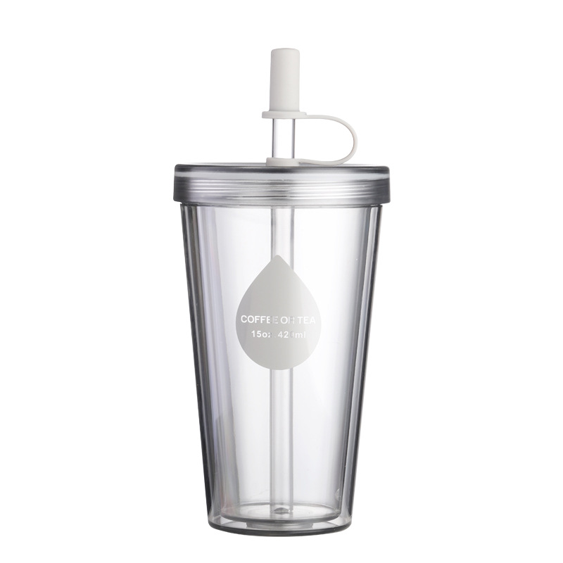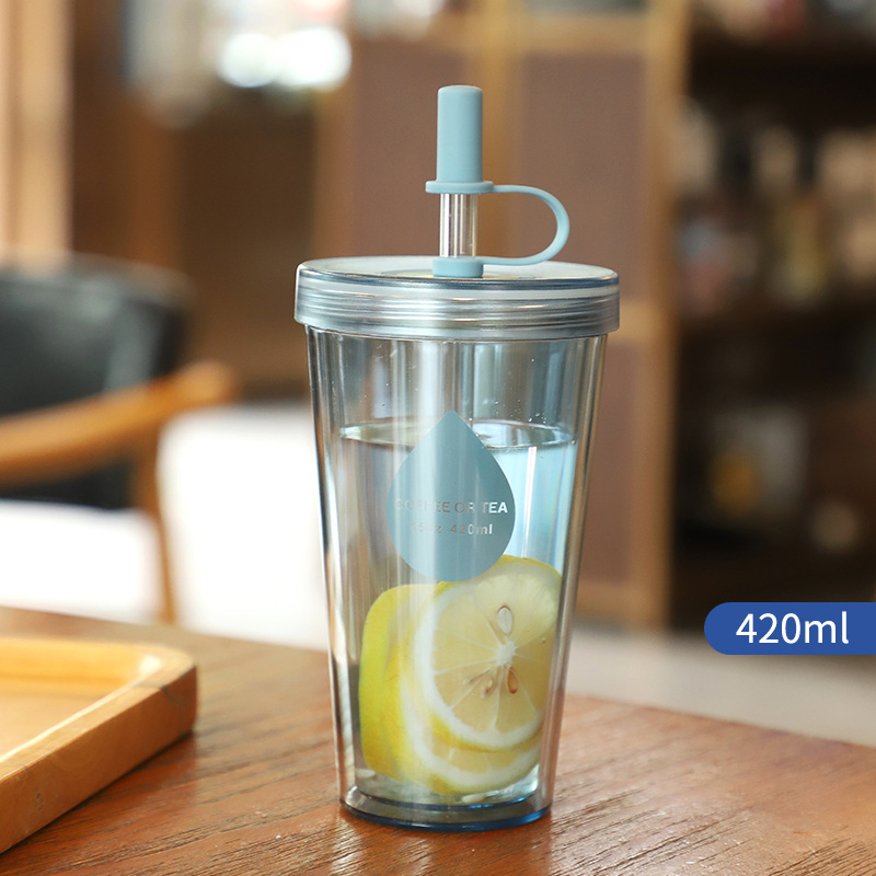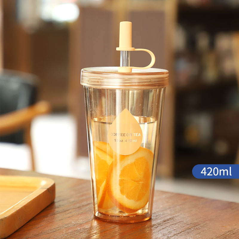 双层吸管奶茶杯带盖便携水杯奶茶杯果茶杯夏季学生小创意塑料杯子