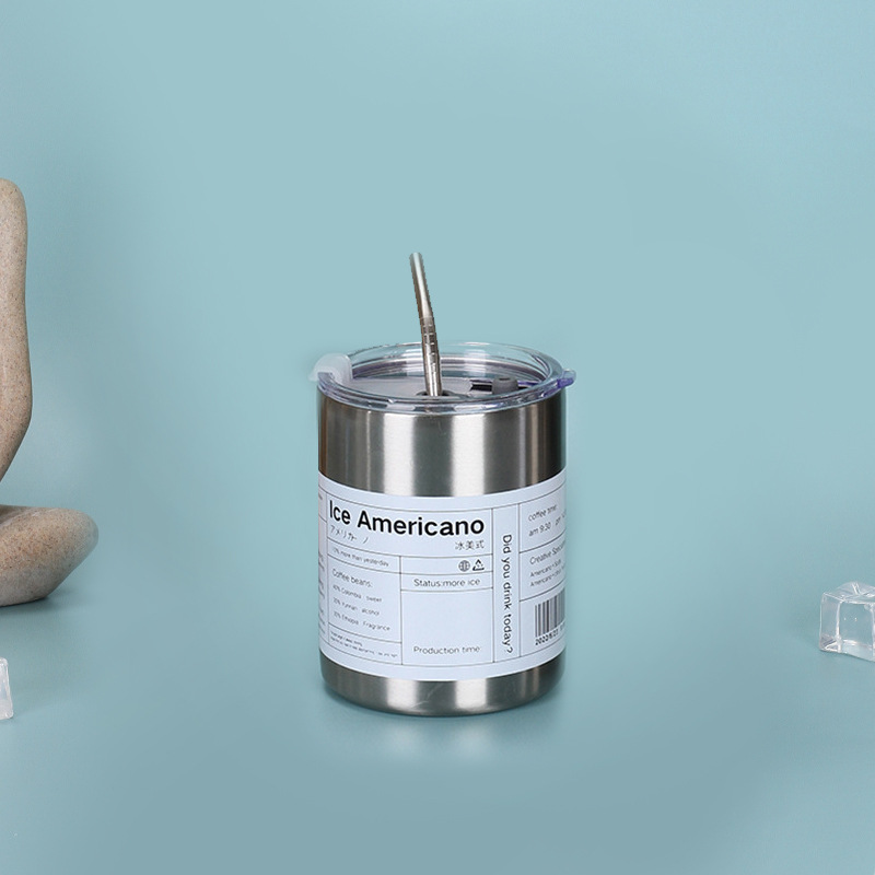 304不锈钢冰美式咖啡杯真空双层带吸管直身杯家用便携保温杯