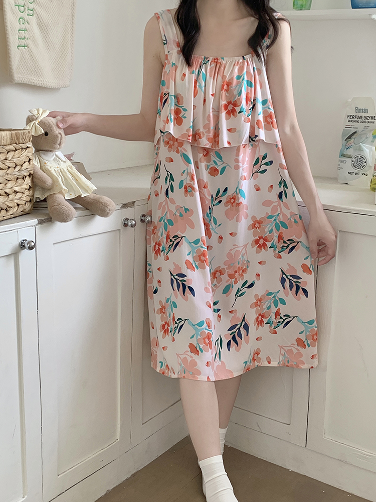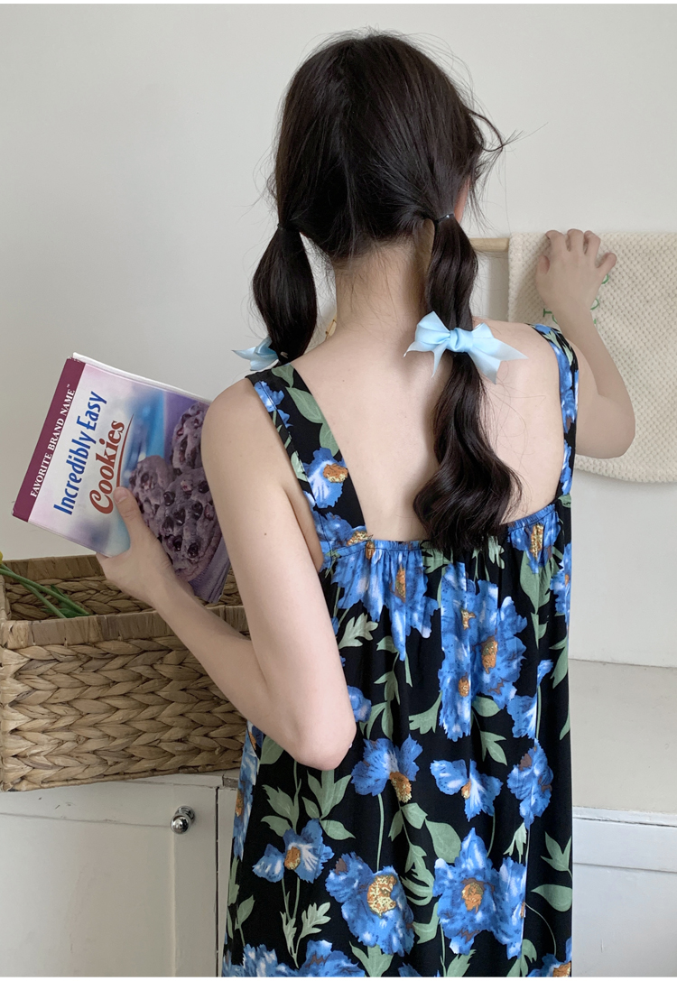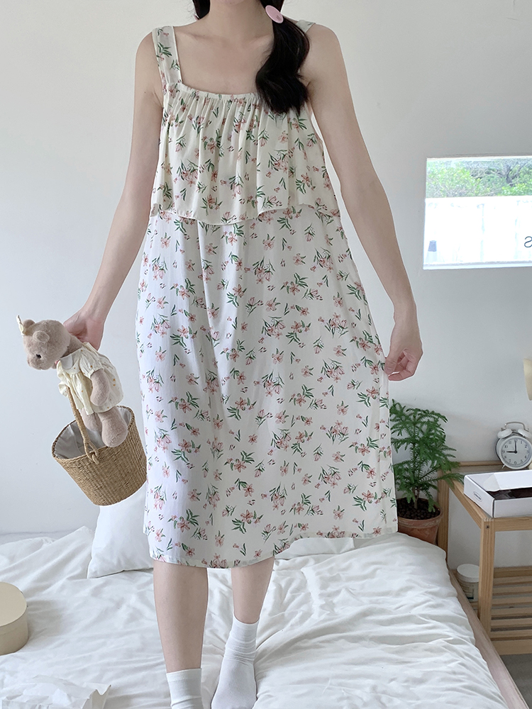 夏季吊带棉绸睡裙女防凸点免穿文胸学生甜美绵绸睡裙显瘦连衣裙