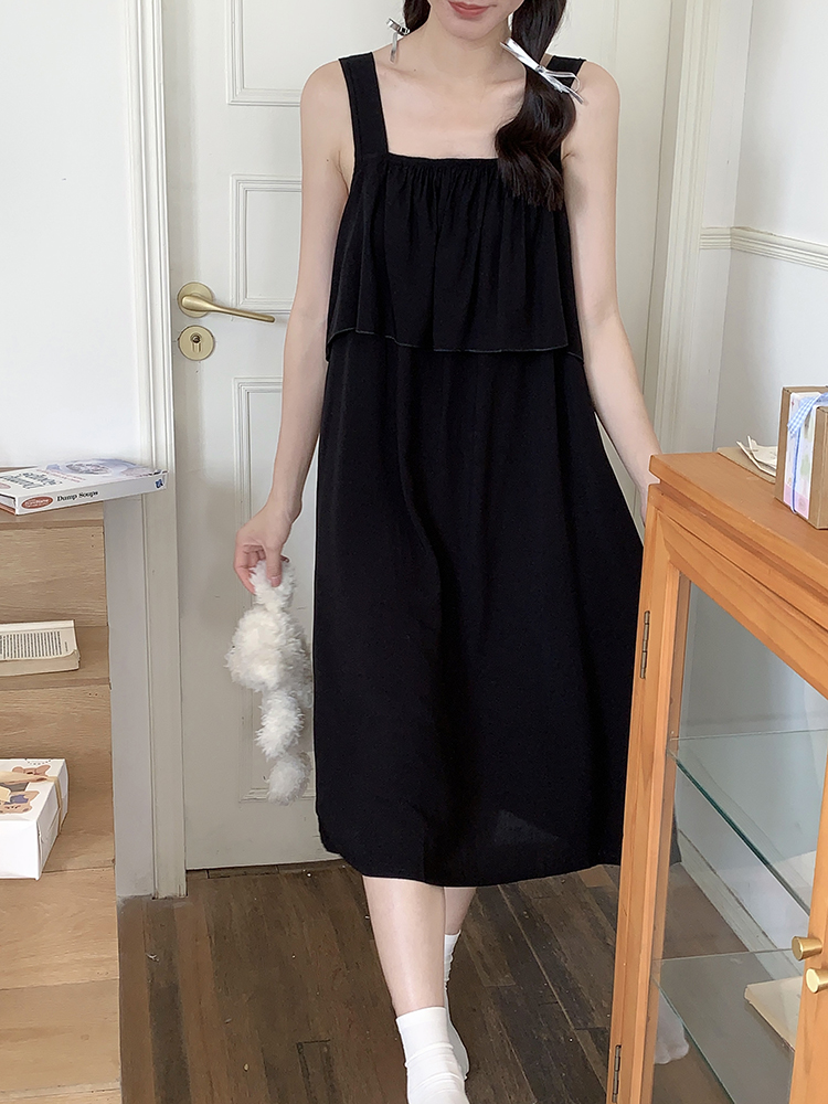 美式复古胸前抽绳绑带娃娃圆领收腰无袖连衣裙女