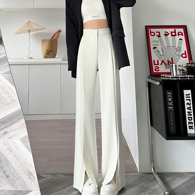 阔腿裤女春秋薄款开叉微喇叭裤高腰百搭垂感宽松休闲直筒西装裤女