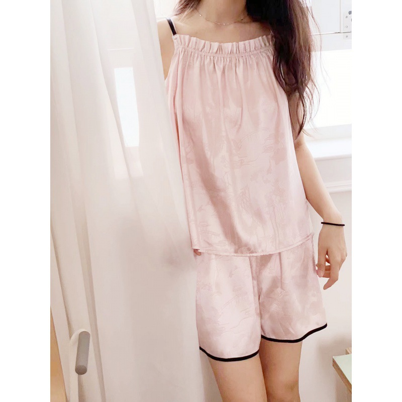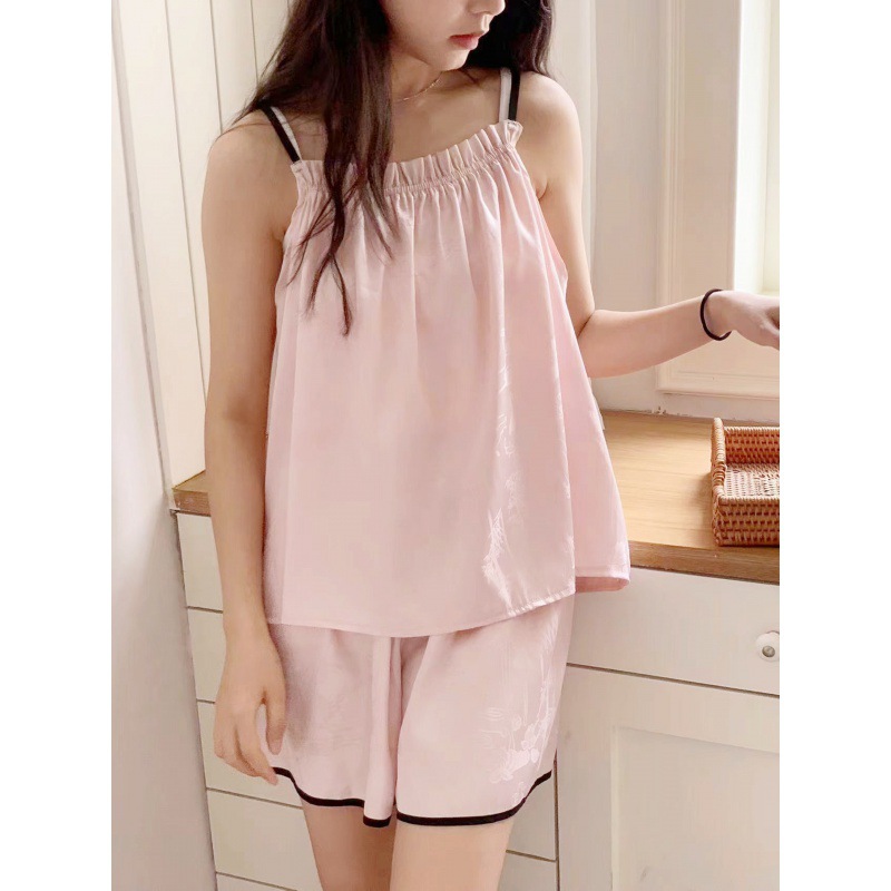 纯欲风绸缎抹胸吊带睡衣短裤套装女舒适甜美少女家居服