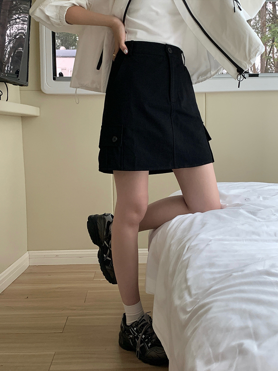 工装风a字短裙女 春夏季韩版休闲裙子高腰显瘦百搭半身裙