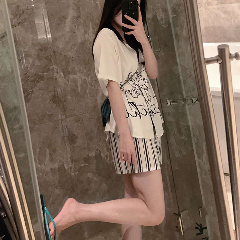 新款上新春夏沙皮狗狗真丝睡衣女短袖法式甜美可外穿家居服
