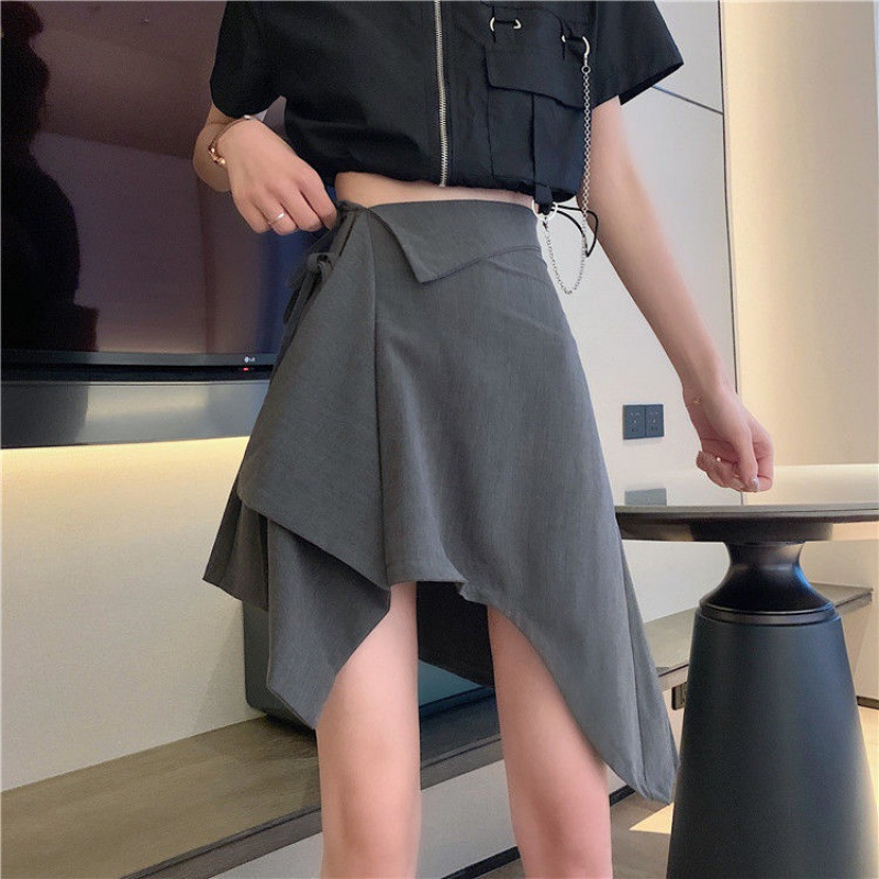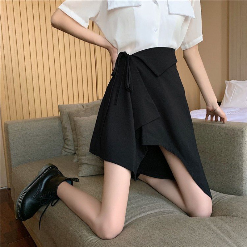 新款时尚港味半身裙女设计感不规则气质a字裙系带高腰短裙子