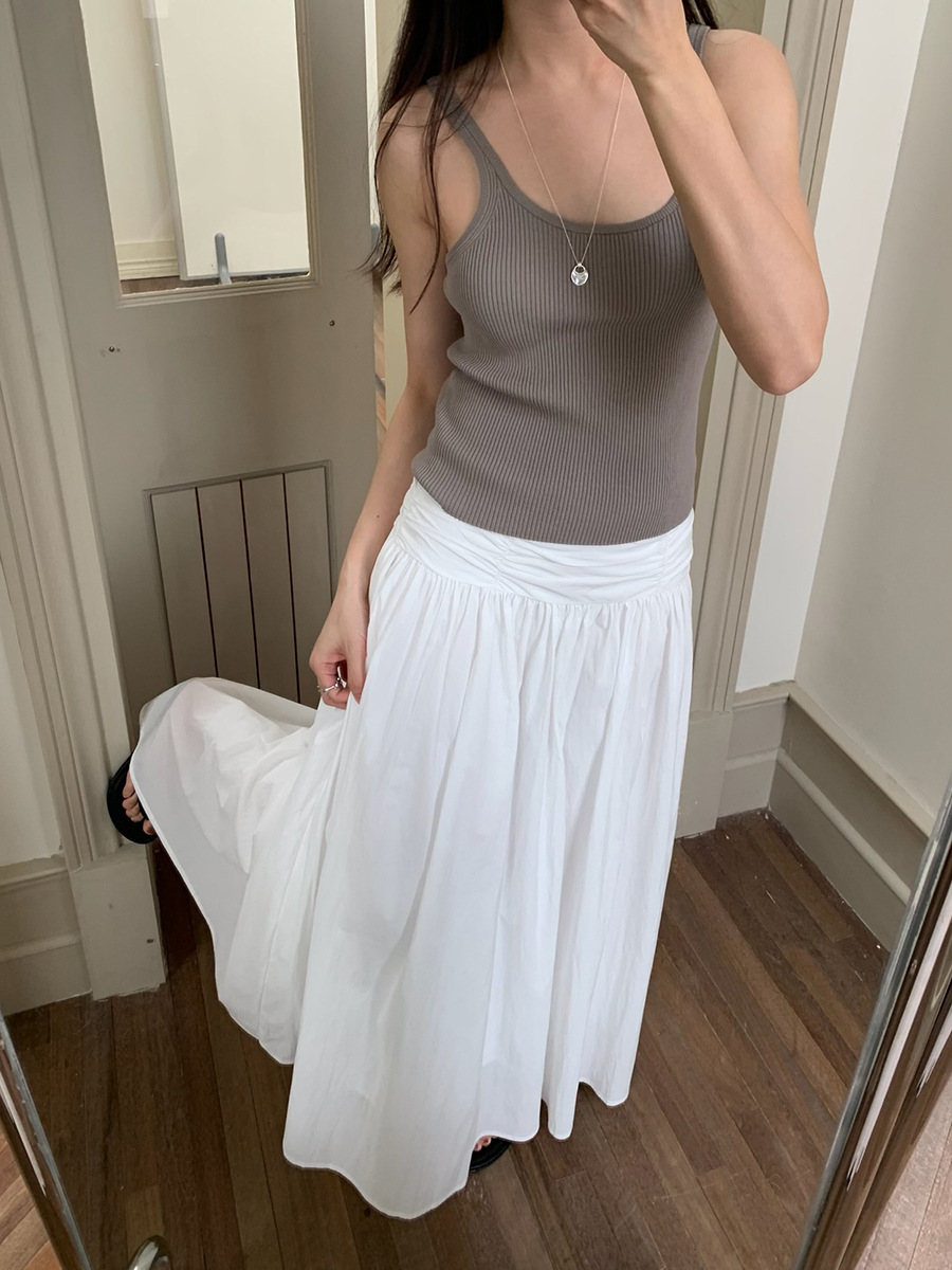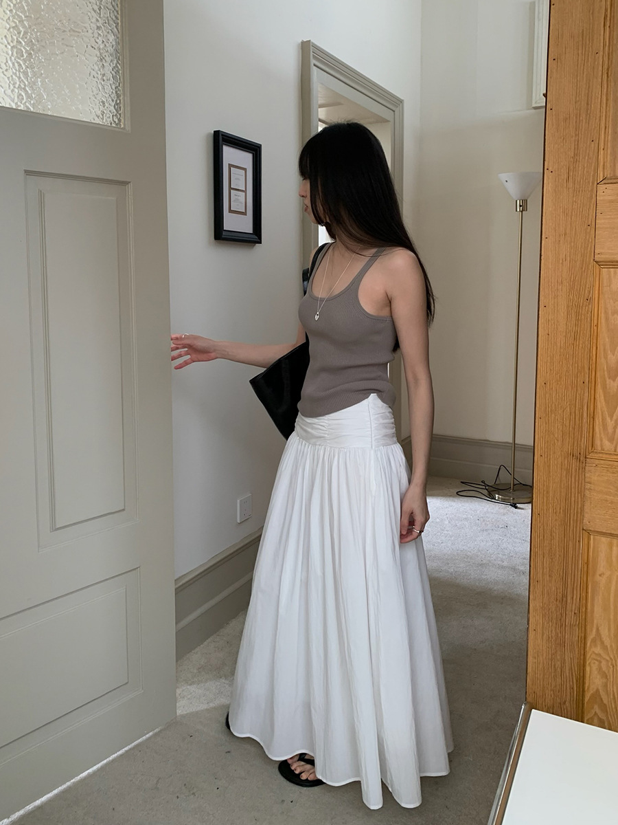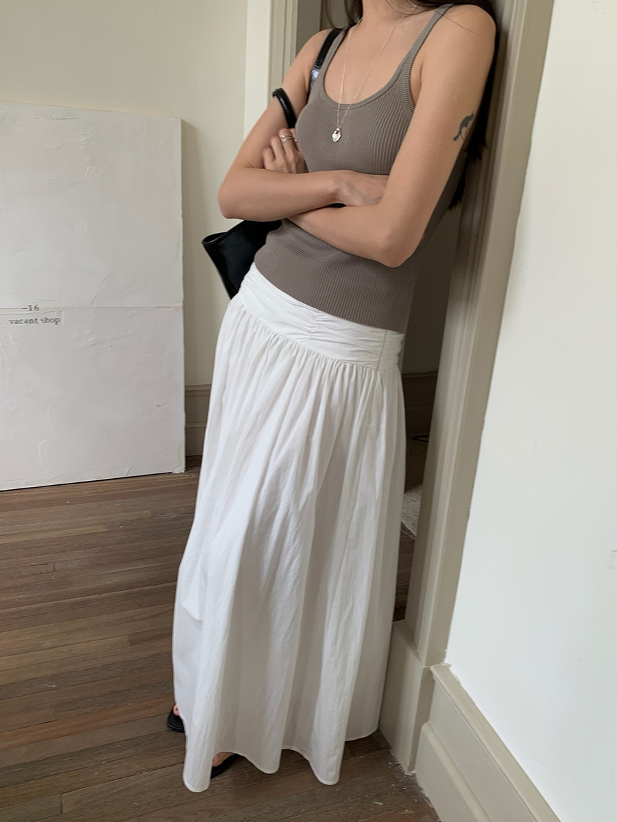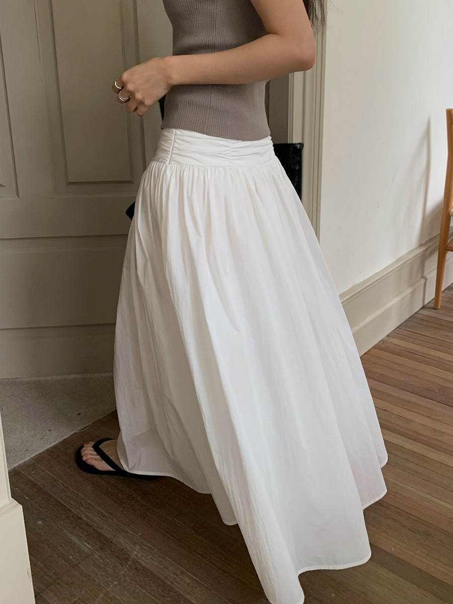 夏季新款褶皱设计A字半身裙法式大摆显瘦长裙