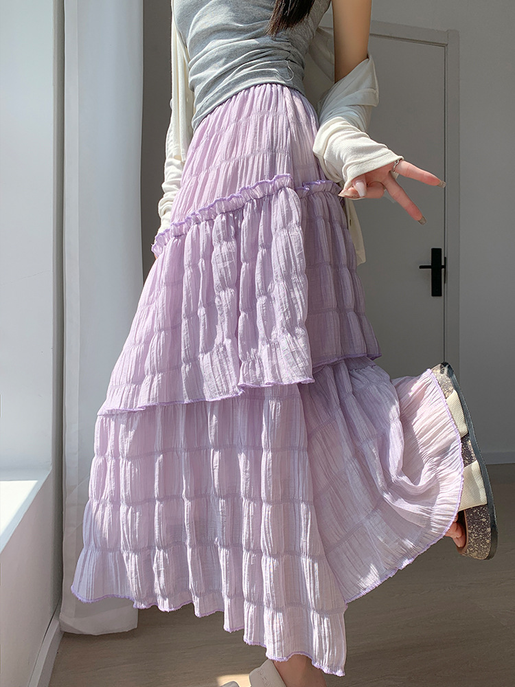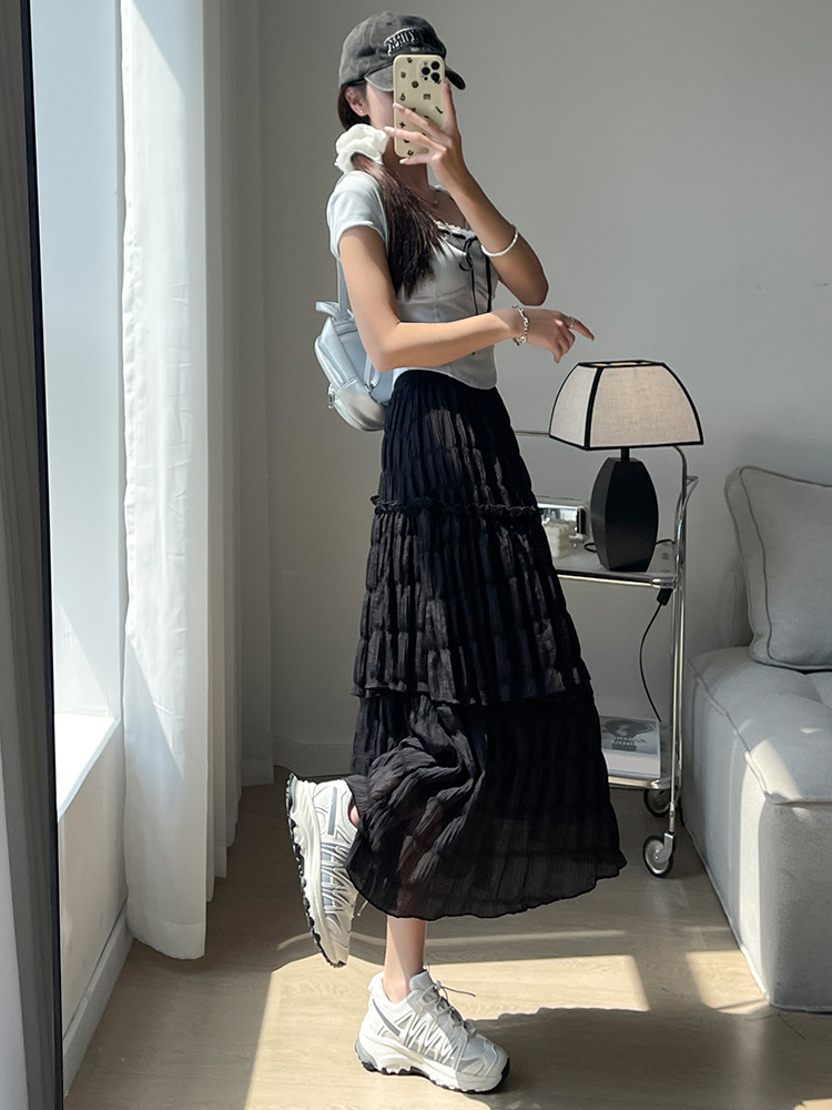 夏季新款白色半身裙女高腰显瘦a字伞裙中长款不规则蛋糕裙
