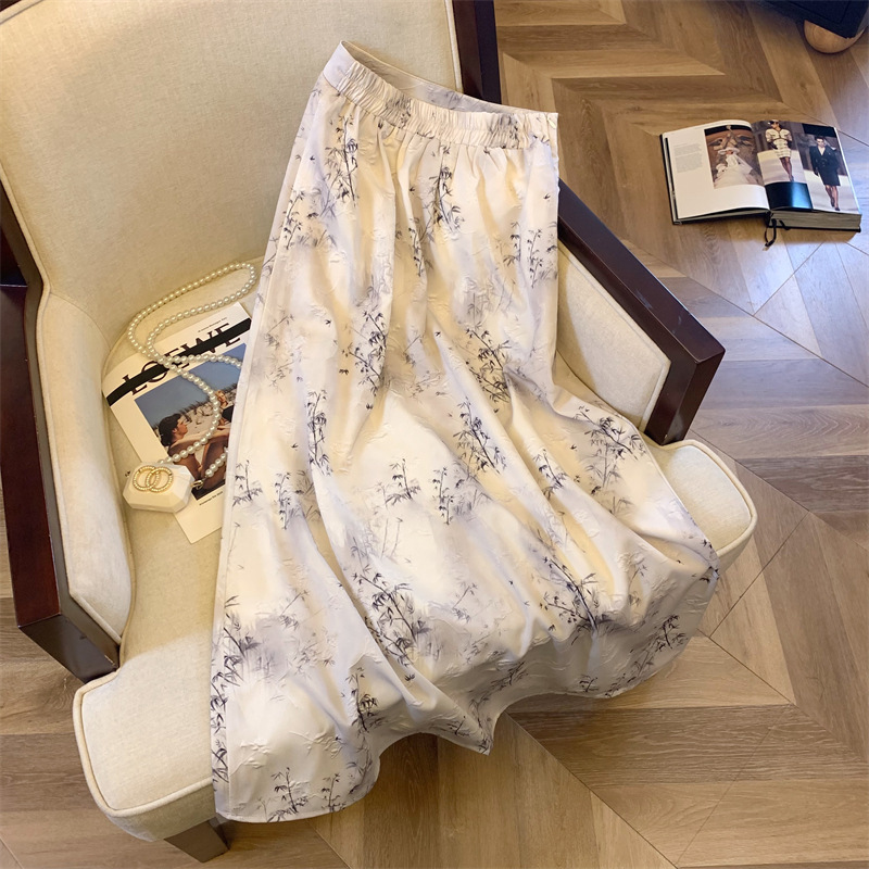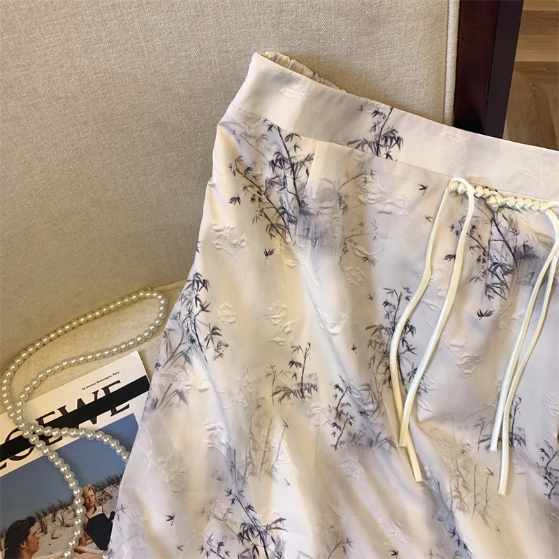 新中式水墨印花半身裙女夏季新款高级A字裙高腰显瘦中长裙子