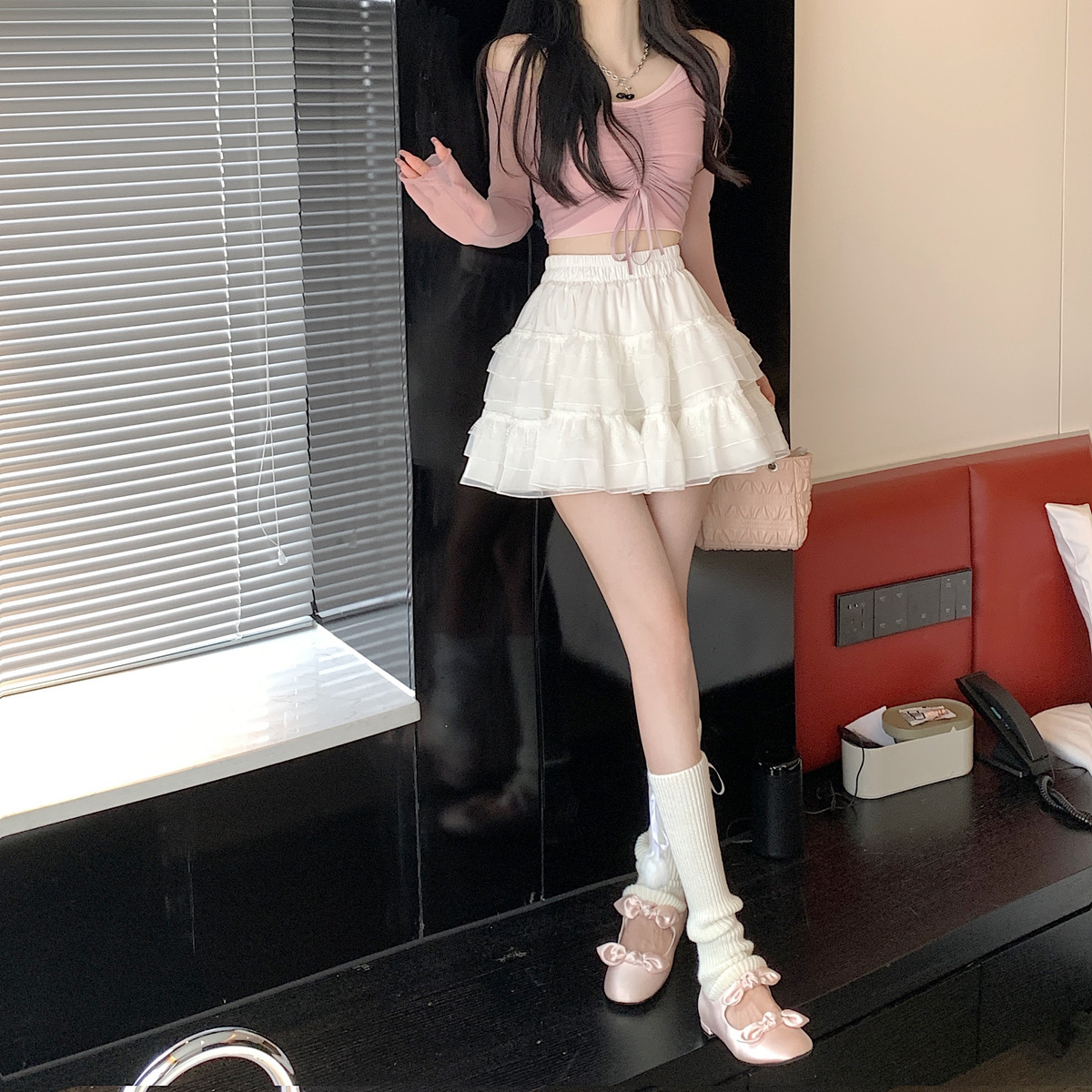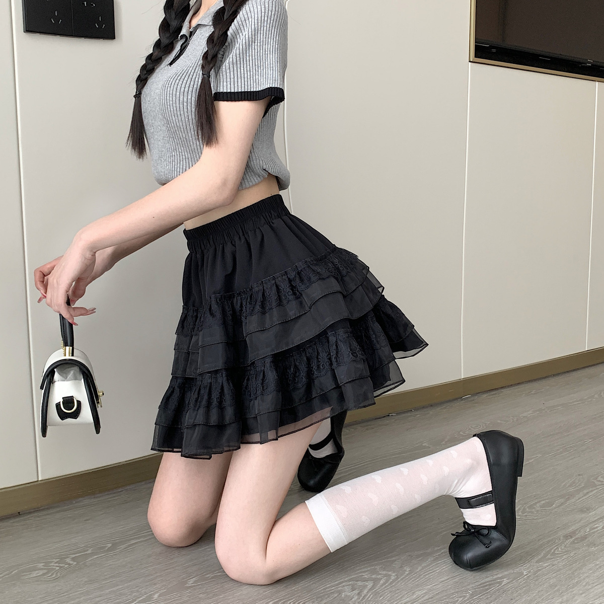 半身裙女夏季新款芭蕾风白色蛋糕短裙仙女网纱蓬蓬裙蕾丝A字裙子