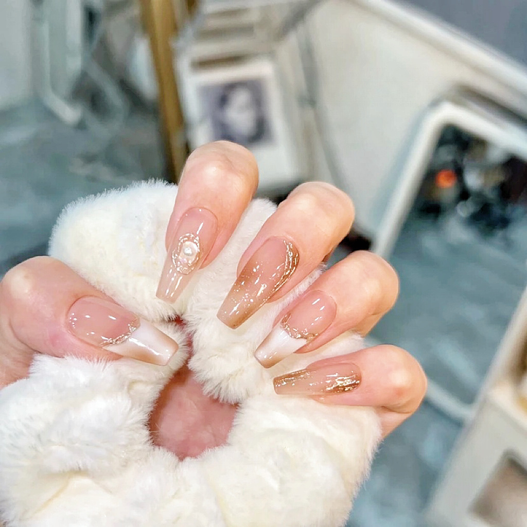美拉德显白纯手工穿戴甲片琥珀法式高级感豹纹渐变穿戴式指甲贴