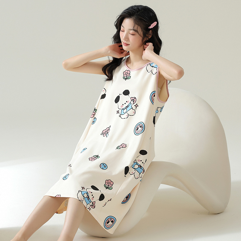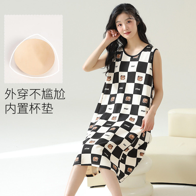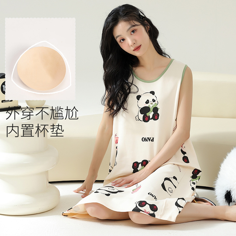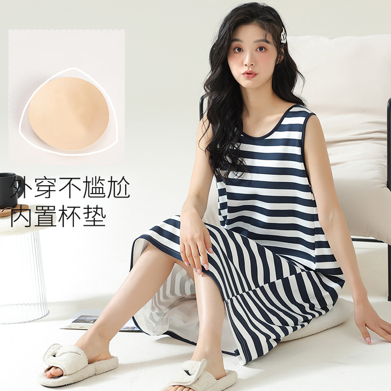 纯棉睡裙女夏天背心无袖带胸垫睡衣女夏季薄款大码孕妇可外穿裙子