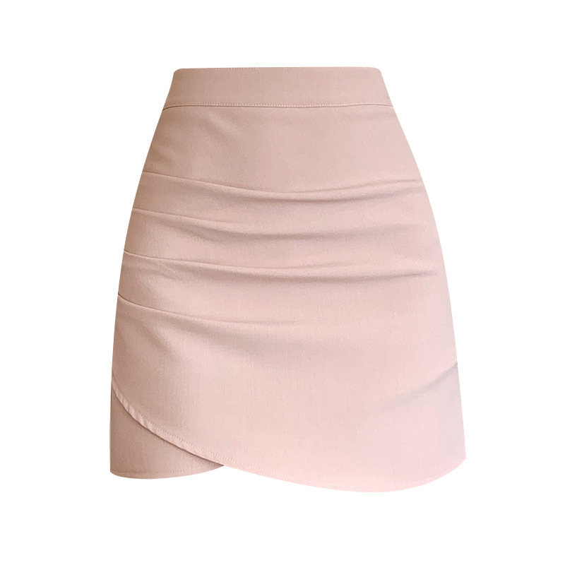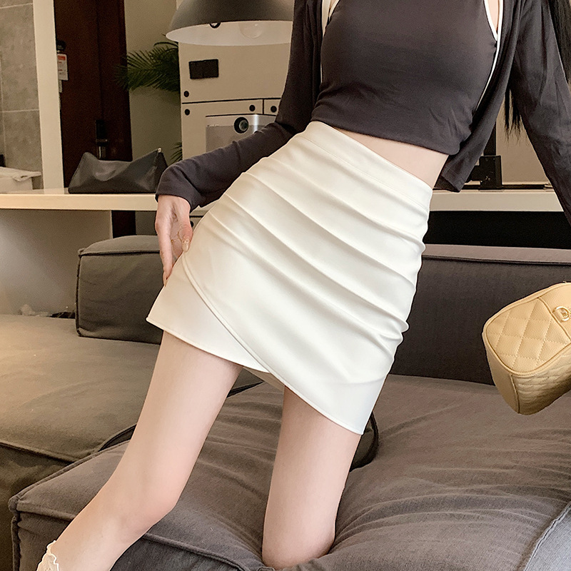 春夏新款时尚褶皱不规则a字裙包臀高腰显瘦短裙半身裙女