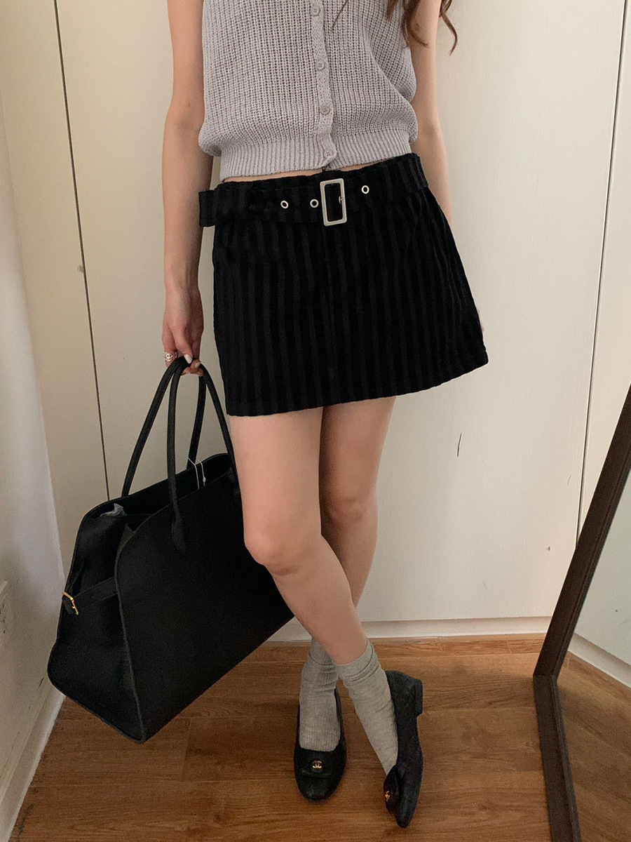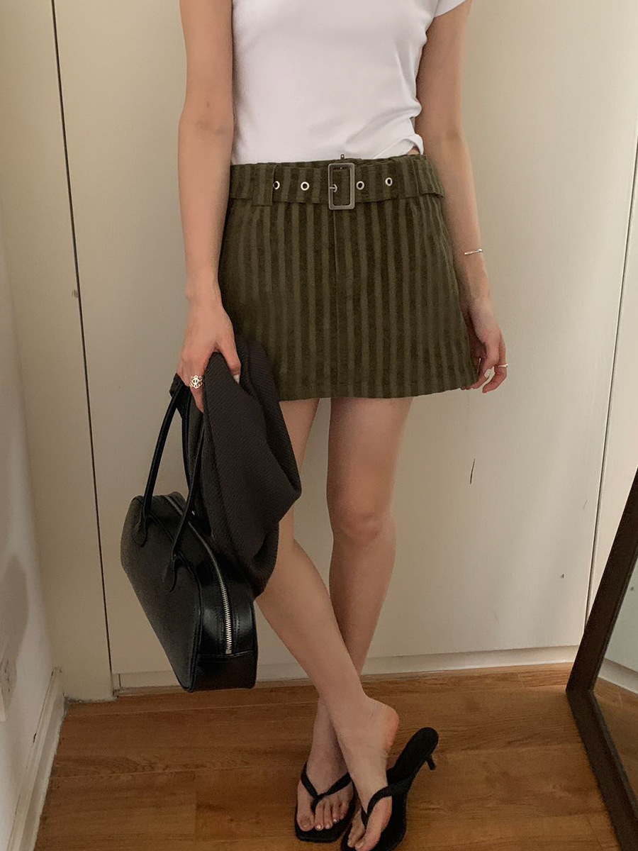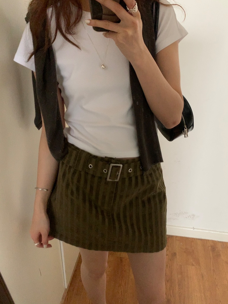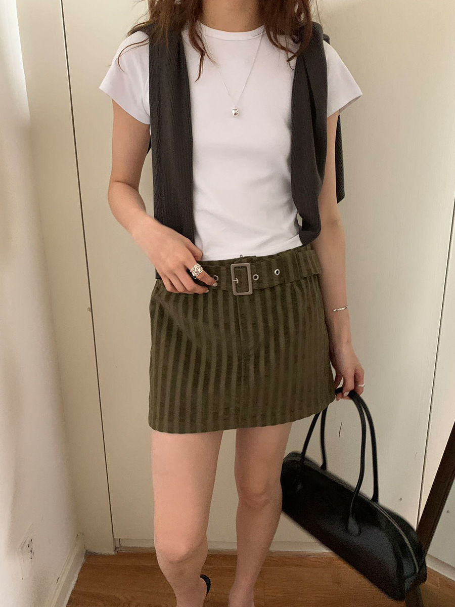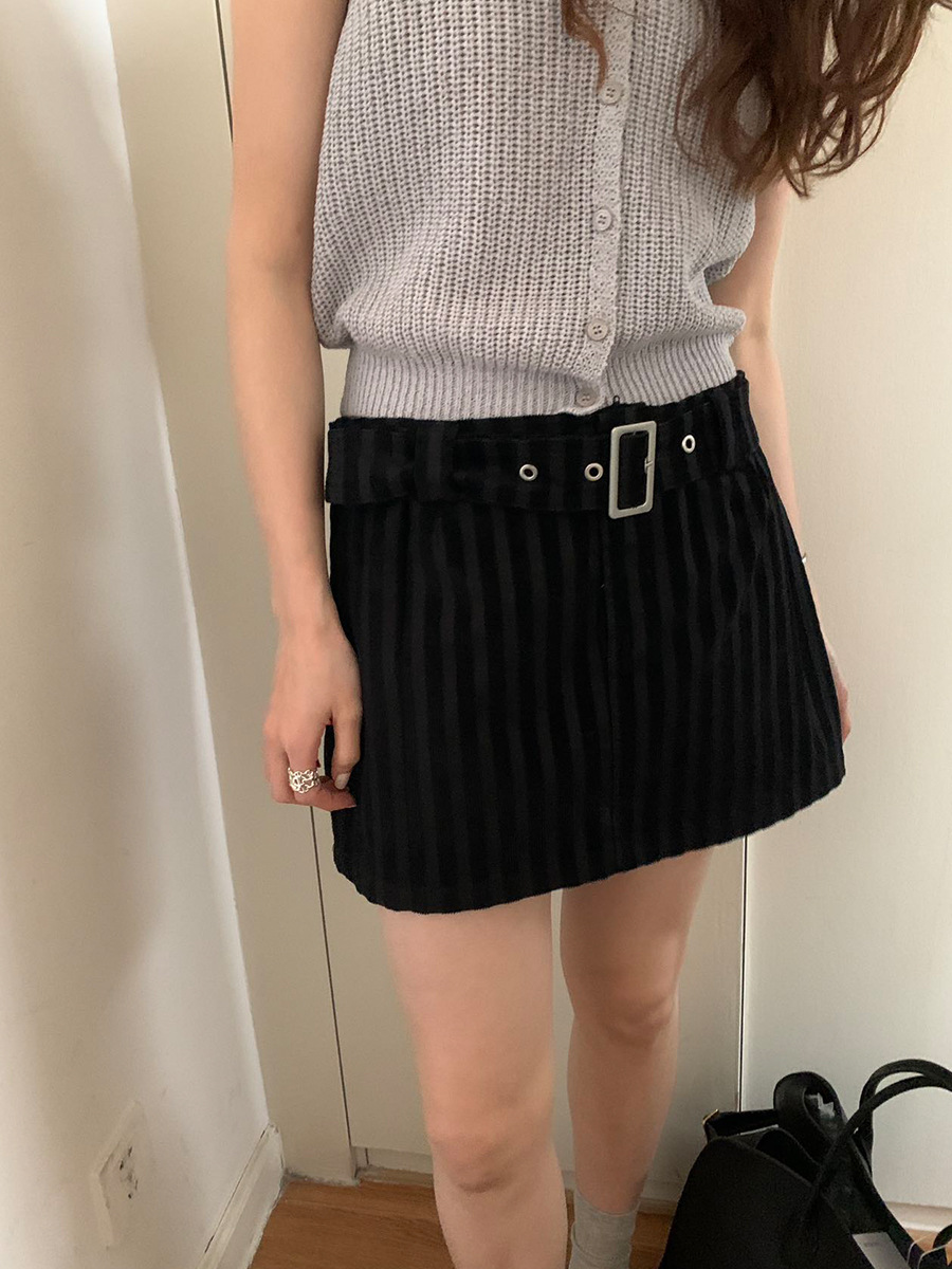 夏季新款辣妹条纹短裙复古肌理感A字半身裙子