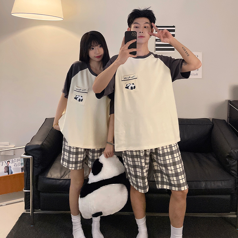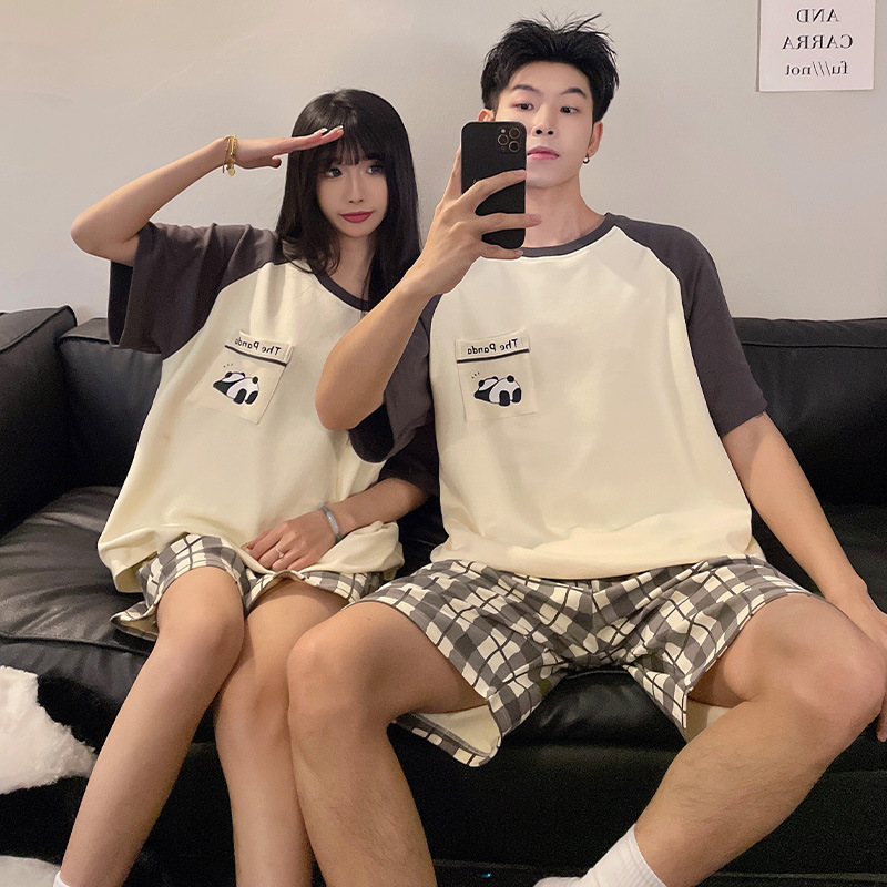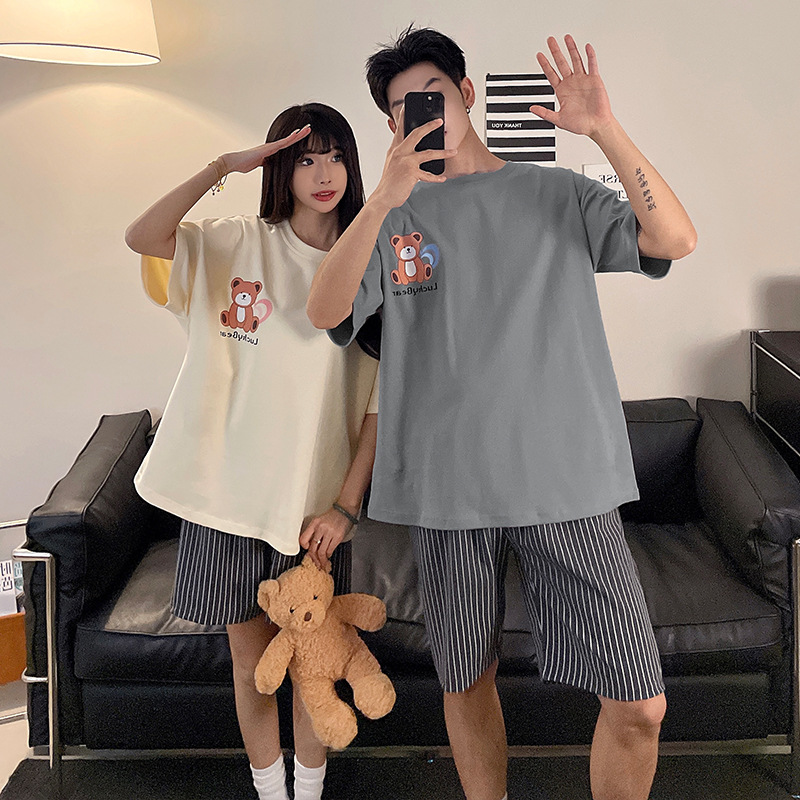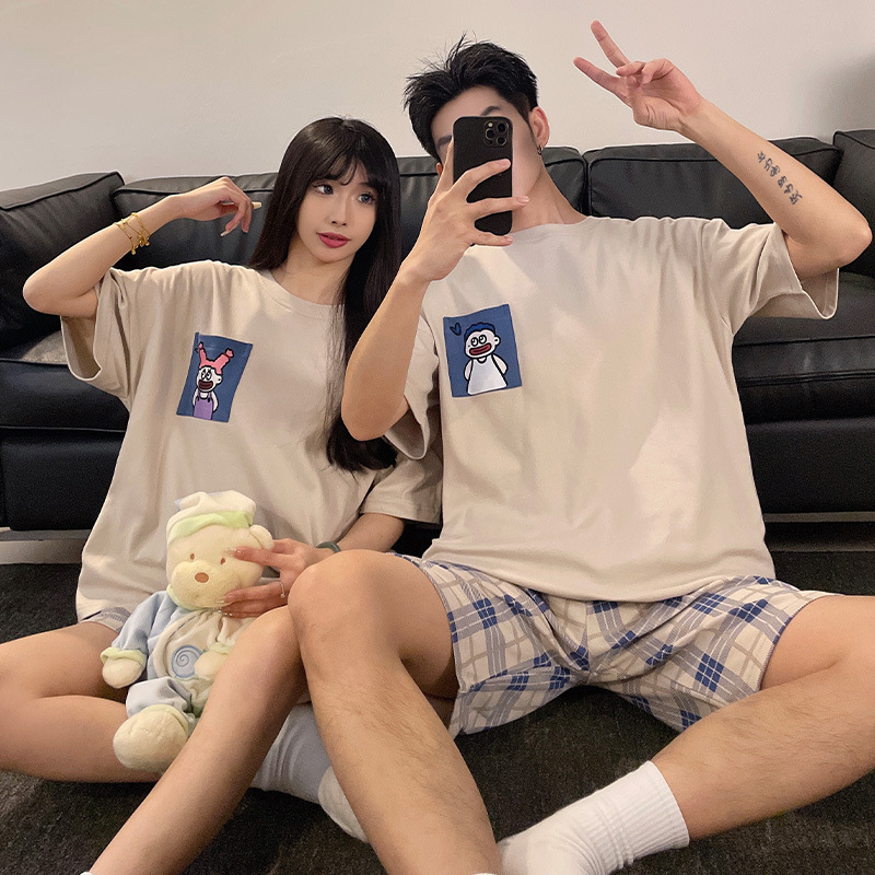 新款情侣睡衣女夏季纯棉两件套薄款夏天短袖男士卡通家居服