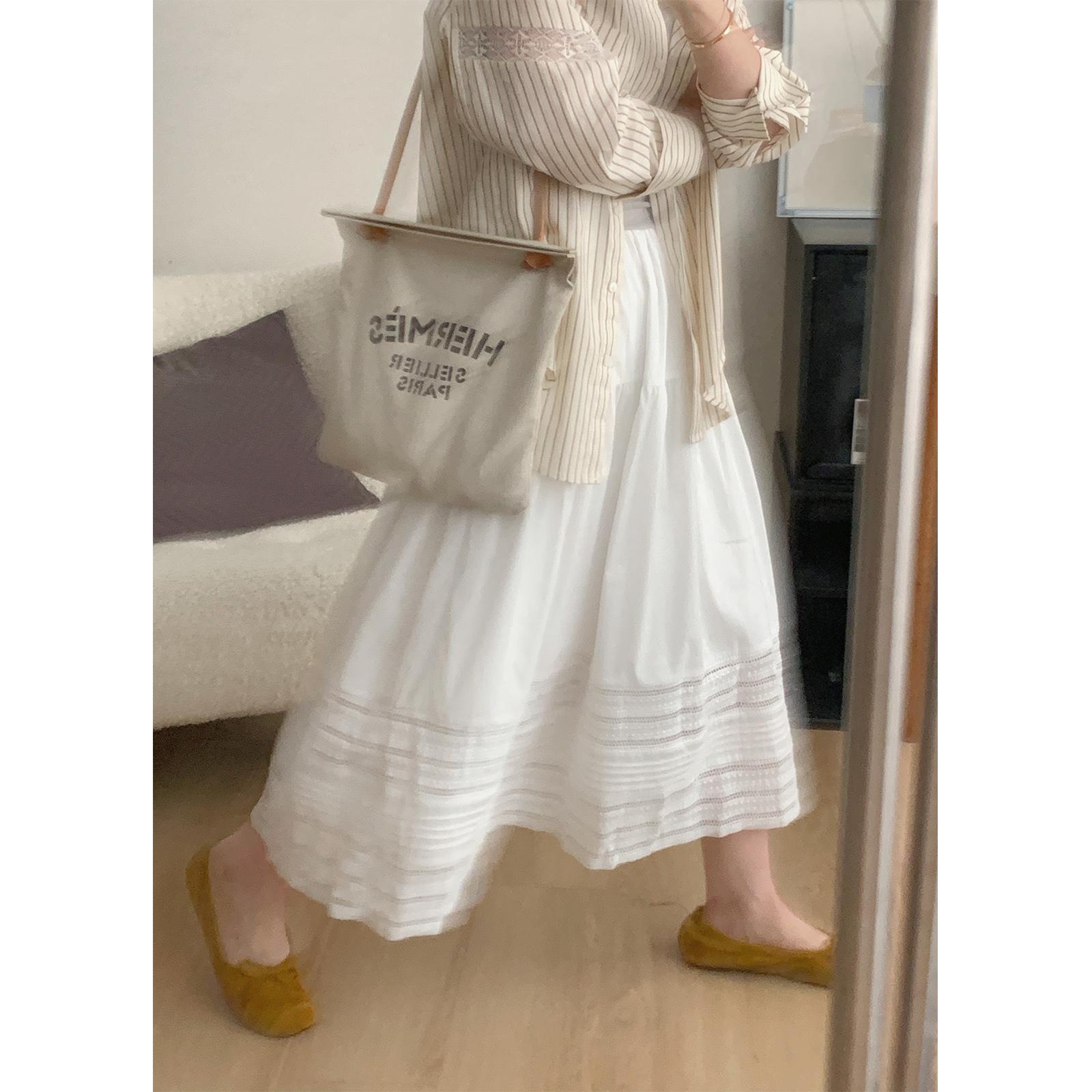 设计感小众镂空半身裙女新款a字显瘦中长裙白色半裙