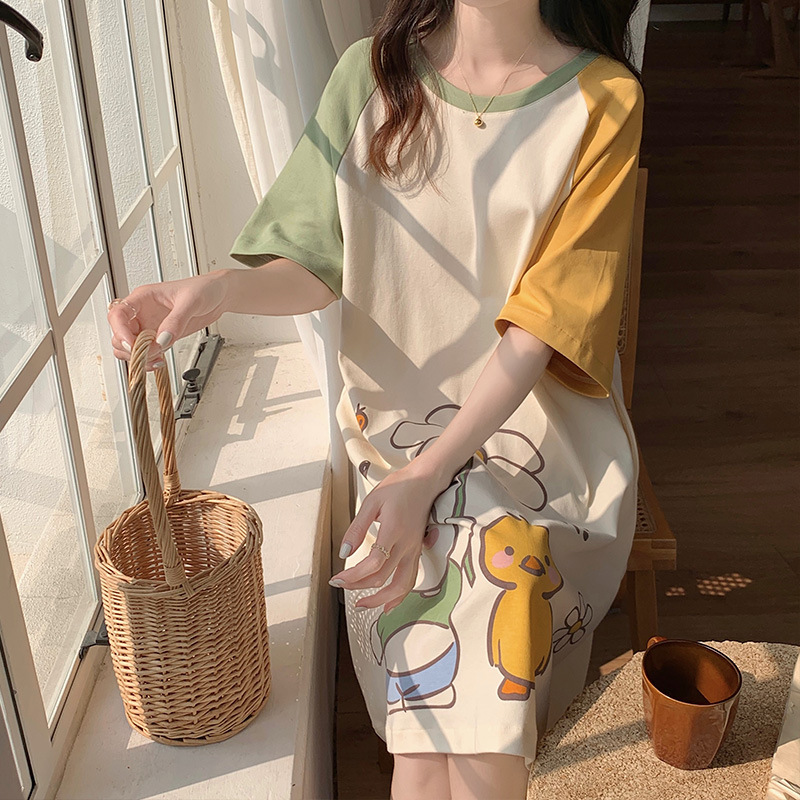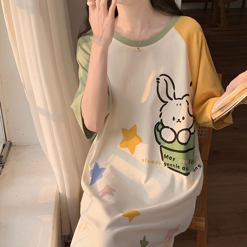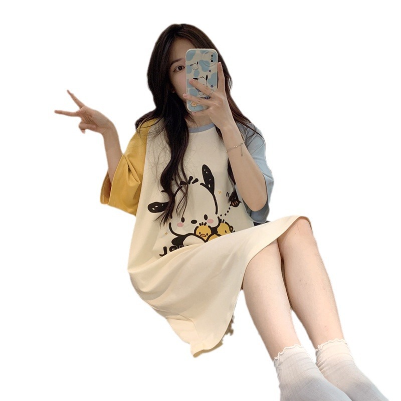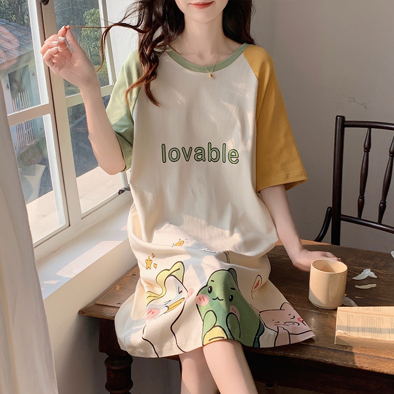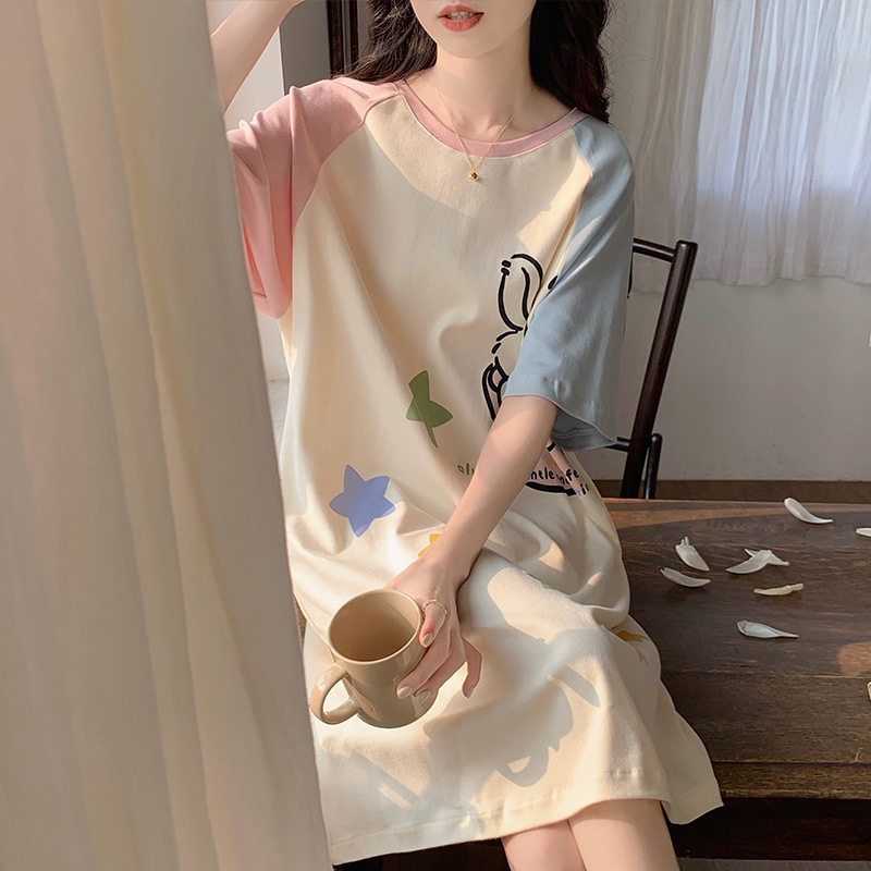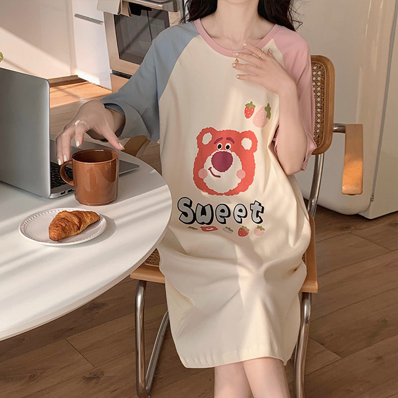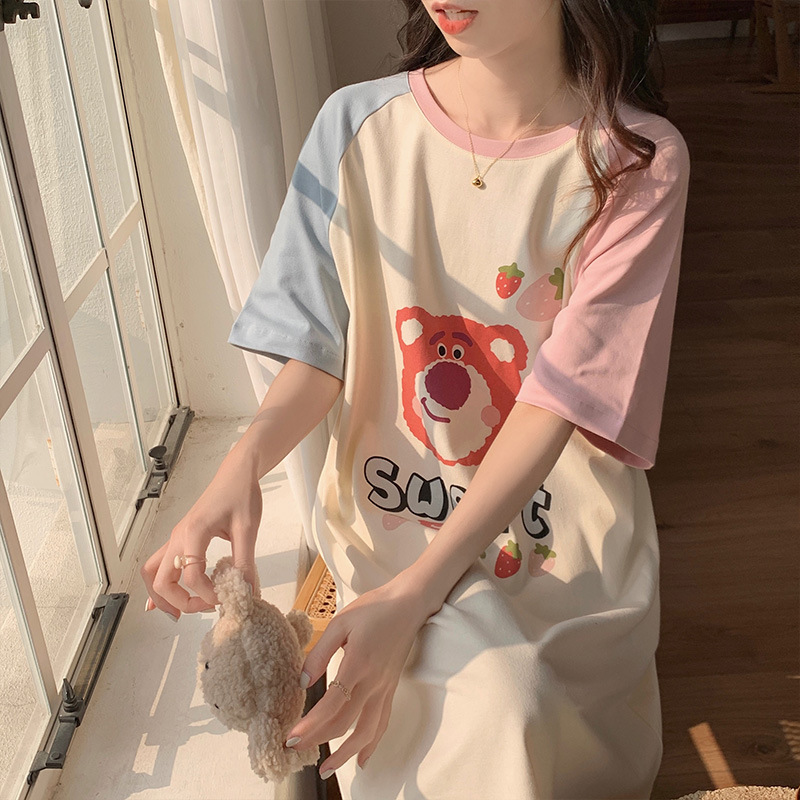 睡裙夏季女纯棉短袖可爱卡通网红睡衣女夏天宽松女士可外穿家居服
