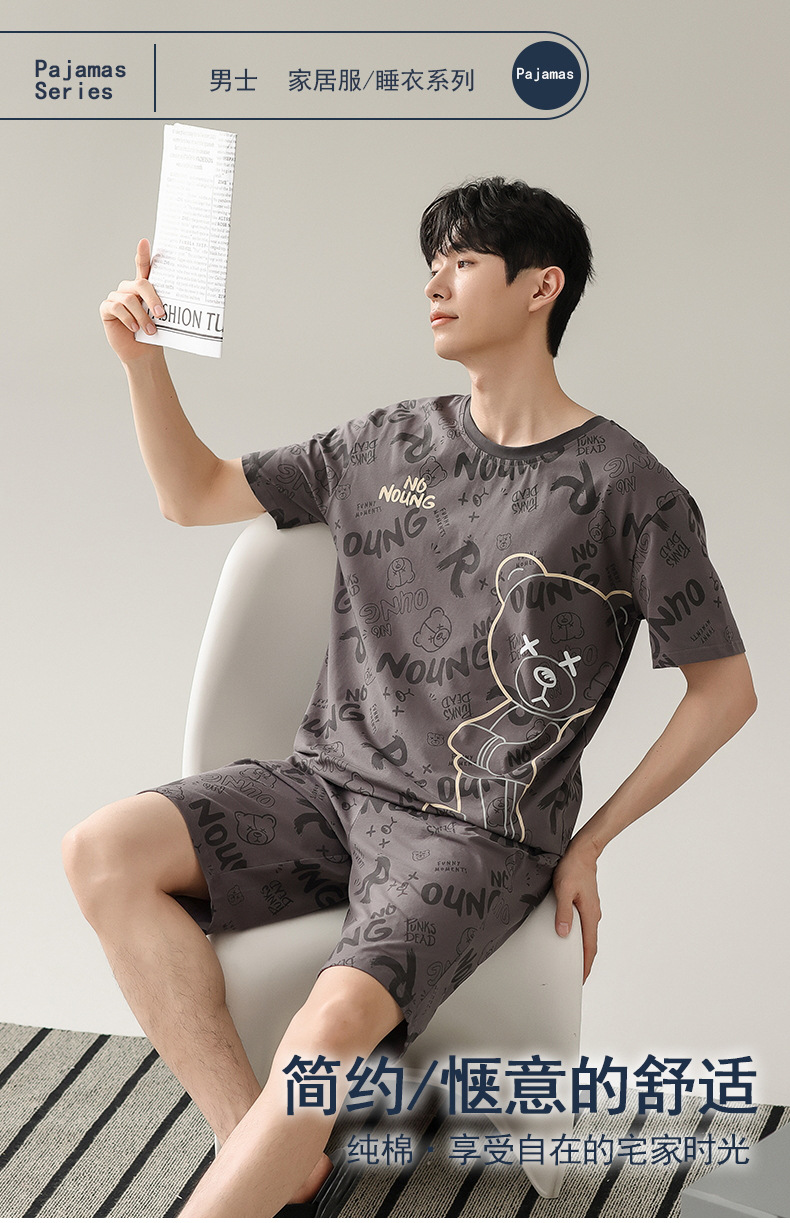 男士睡衣男夏季短袖纯棉男款夏天薄新款全棉大码家居服
