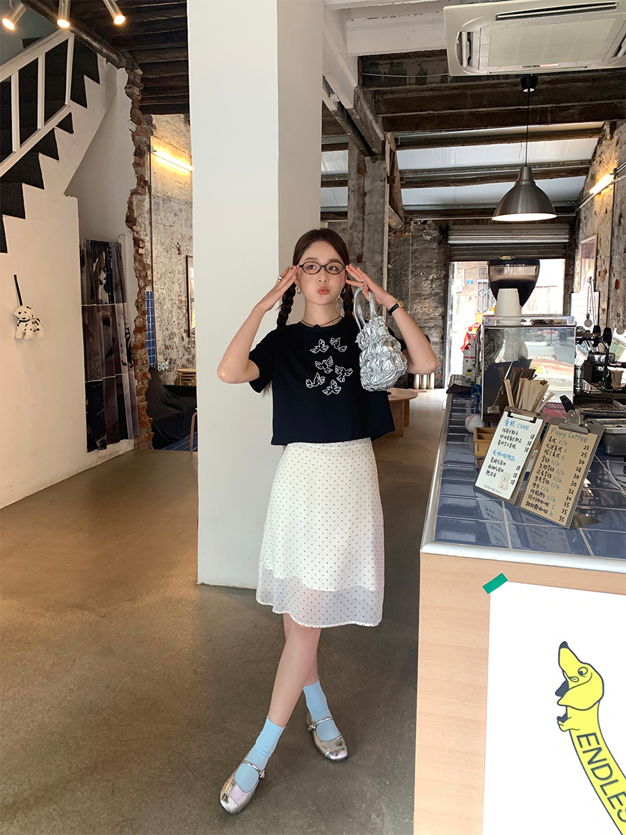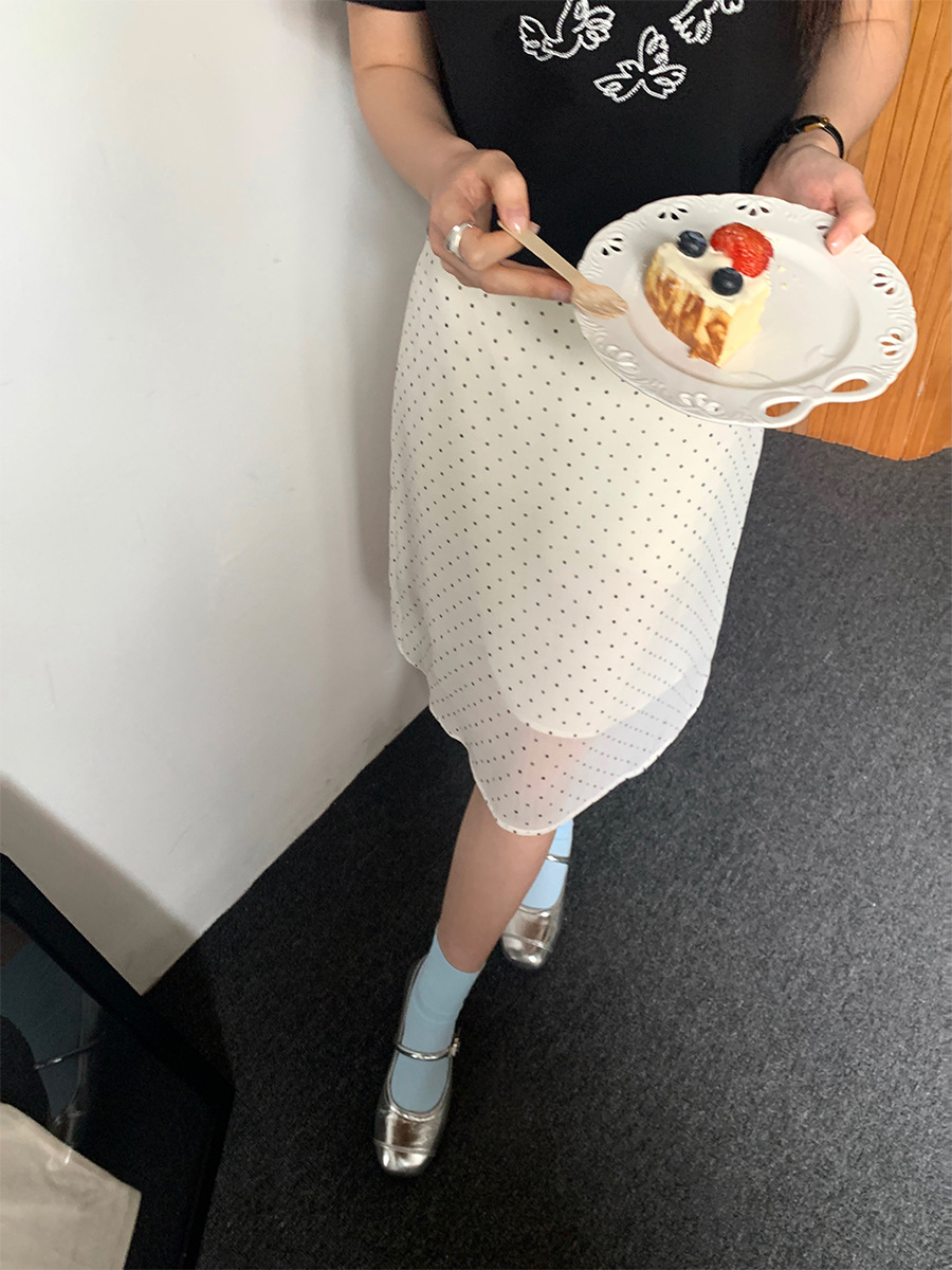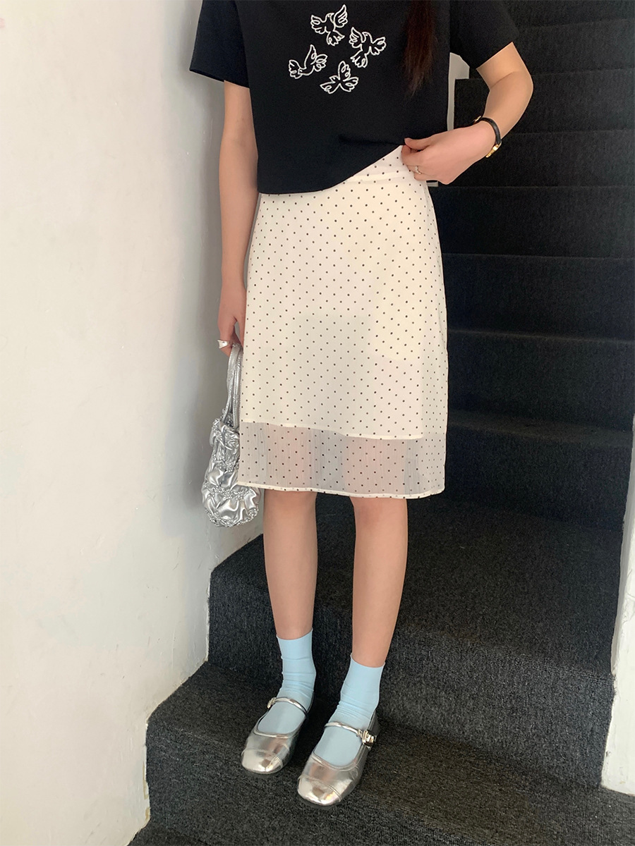 小个子波点半身裙女夏高腰显瘦中长款包臀a字裙