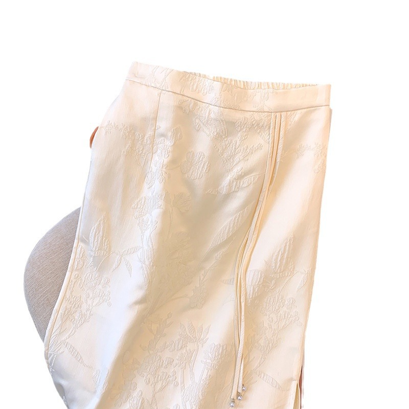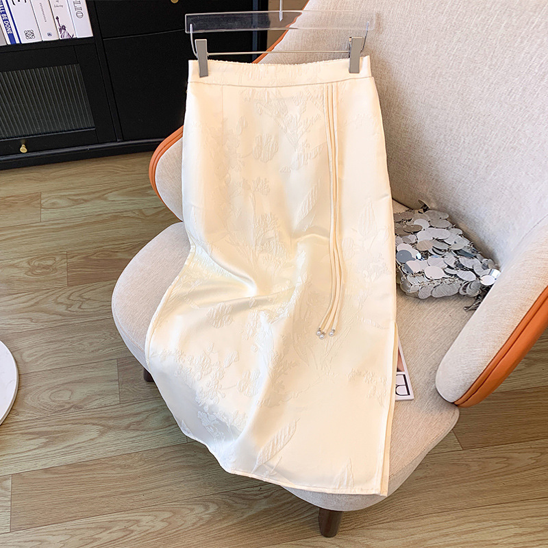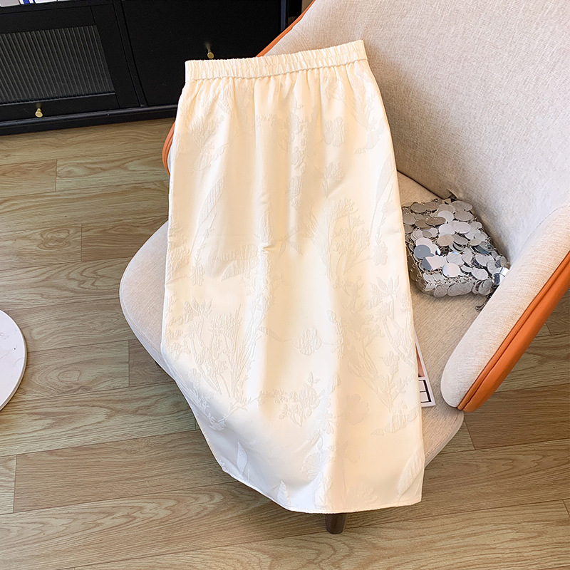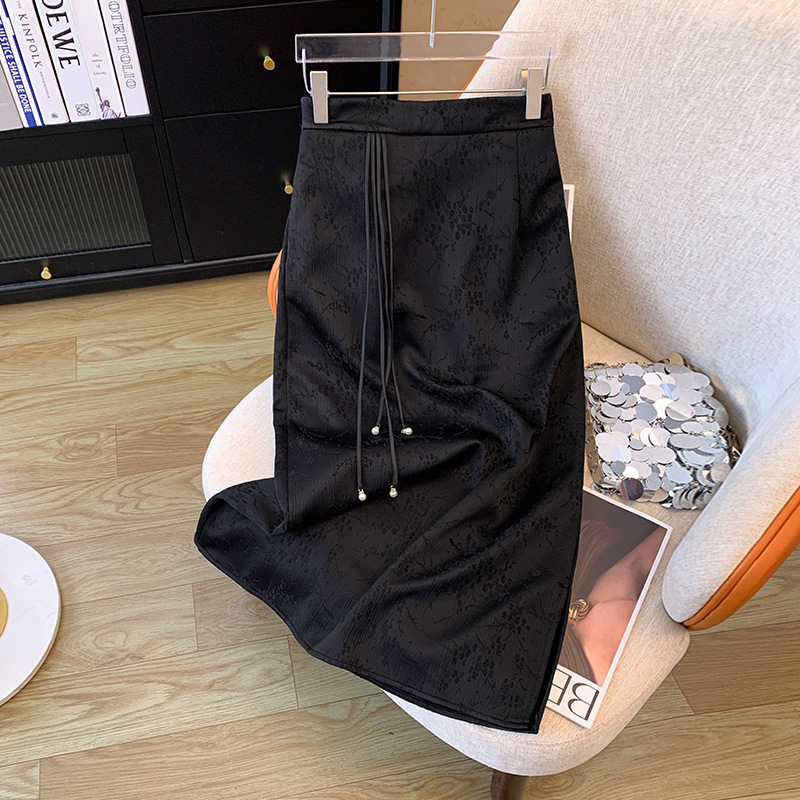 复古提花气质包臀半身裙女春季新款高腰中长款一步开叉裙子