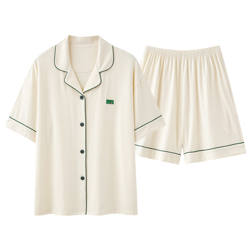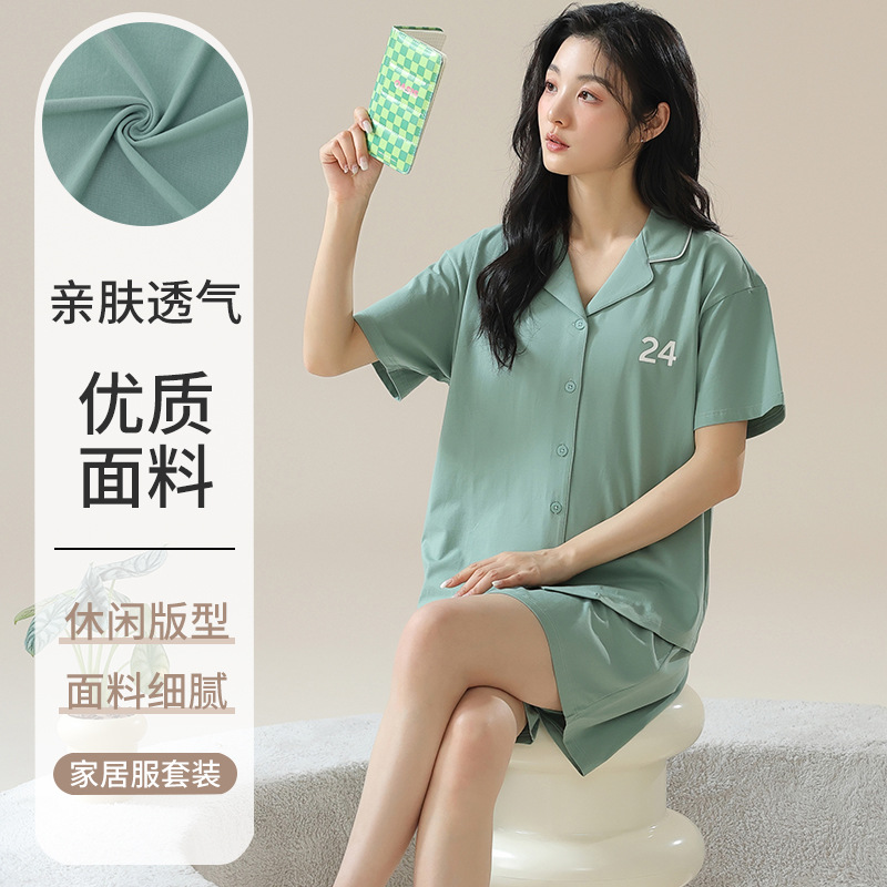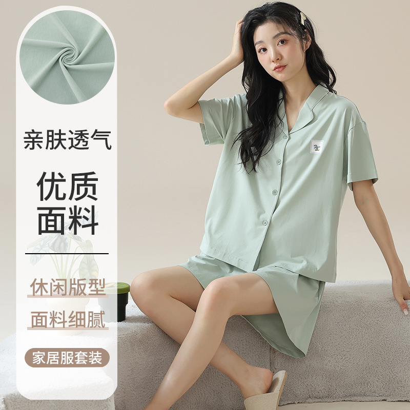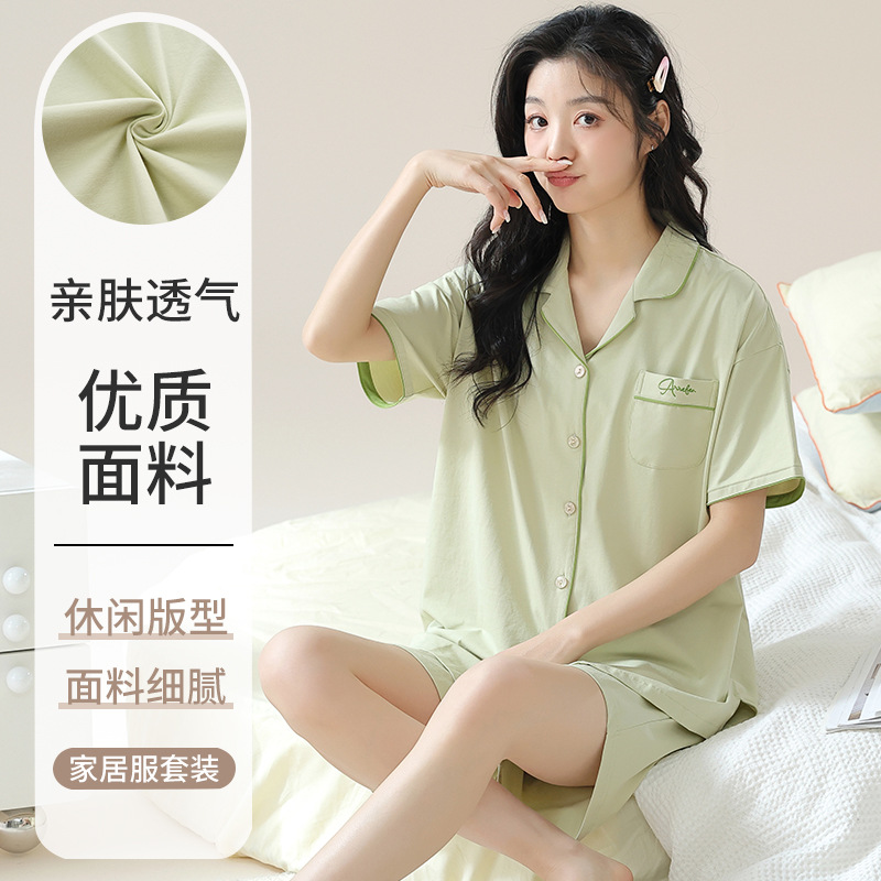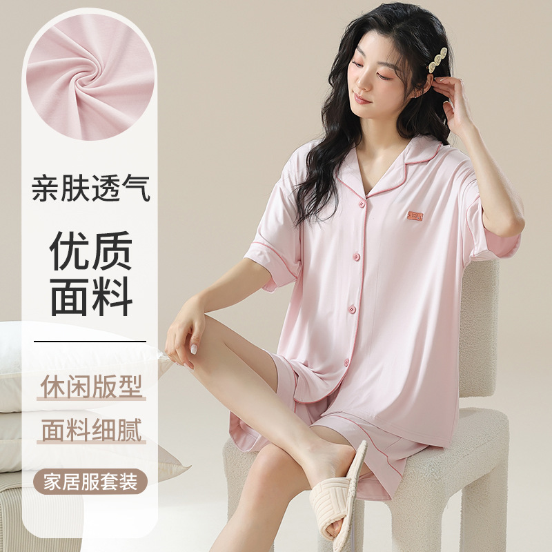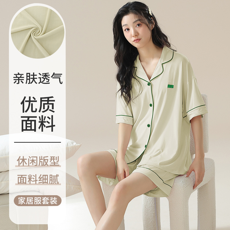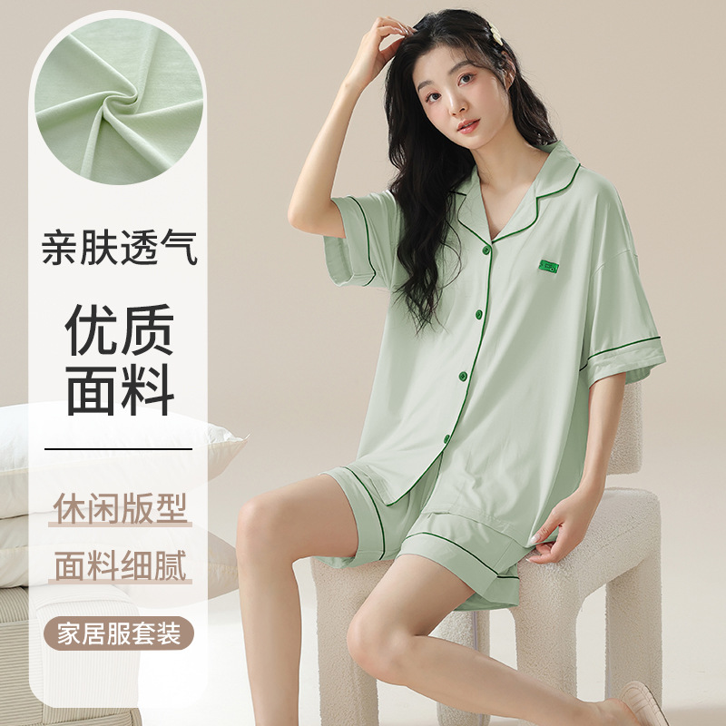 莫代尔睡衣女夏天薄款短袖短裤开衫凉感年新款家居服休闲套装