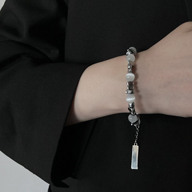 猫眼石手链不掉色男潮简约高级感珍珠手串钛钢设计小众情侣手饰女