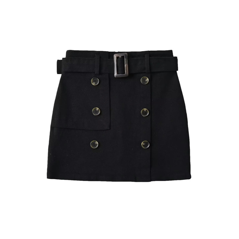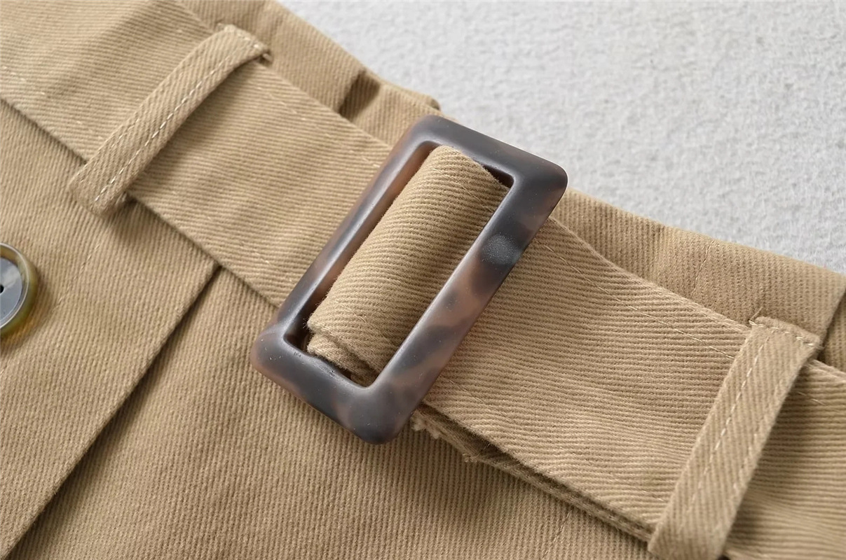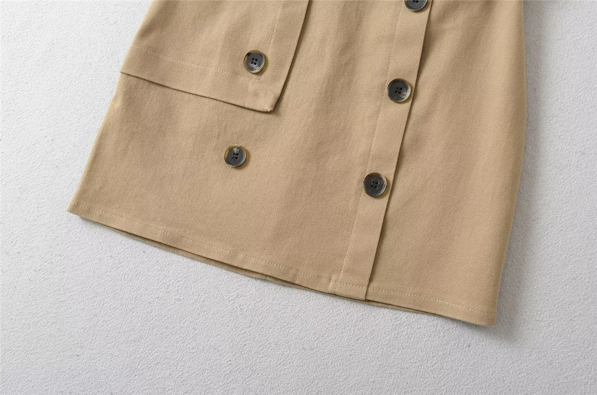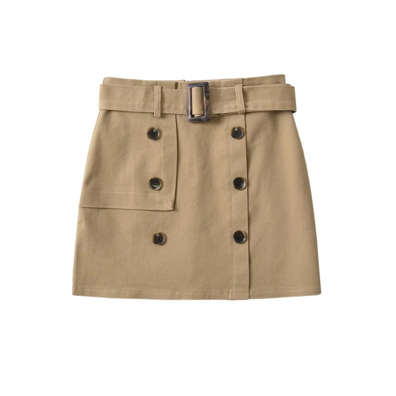 卡其色高腰设计感工装半身裙女春夏季复古气质腰带一步裙辣妹短裙