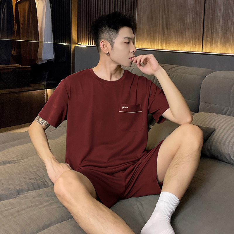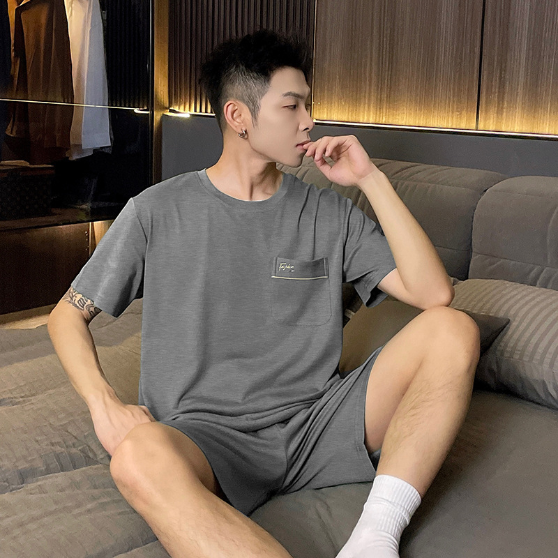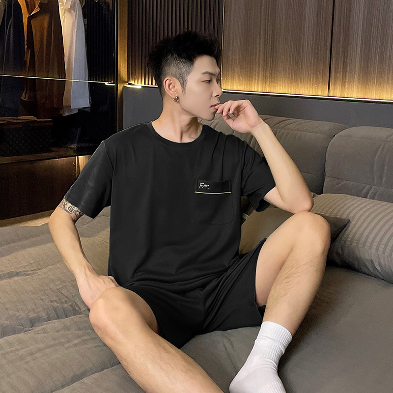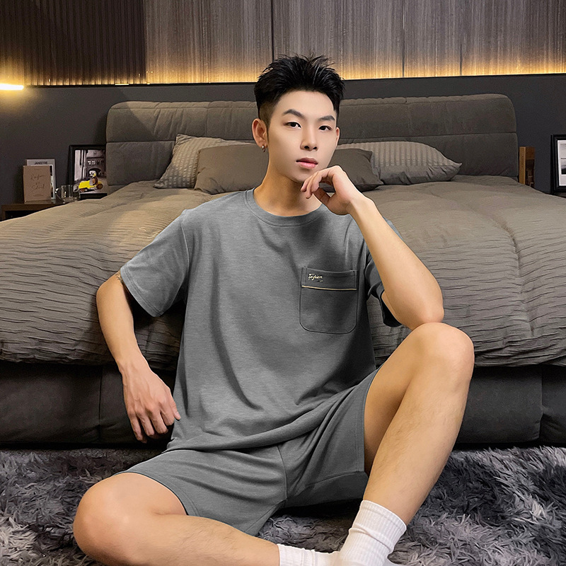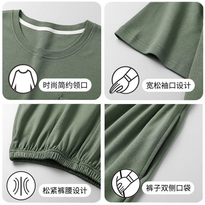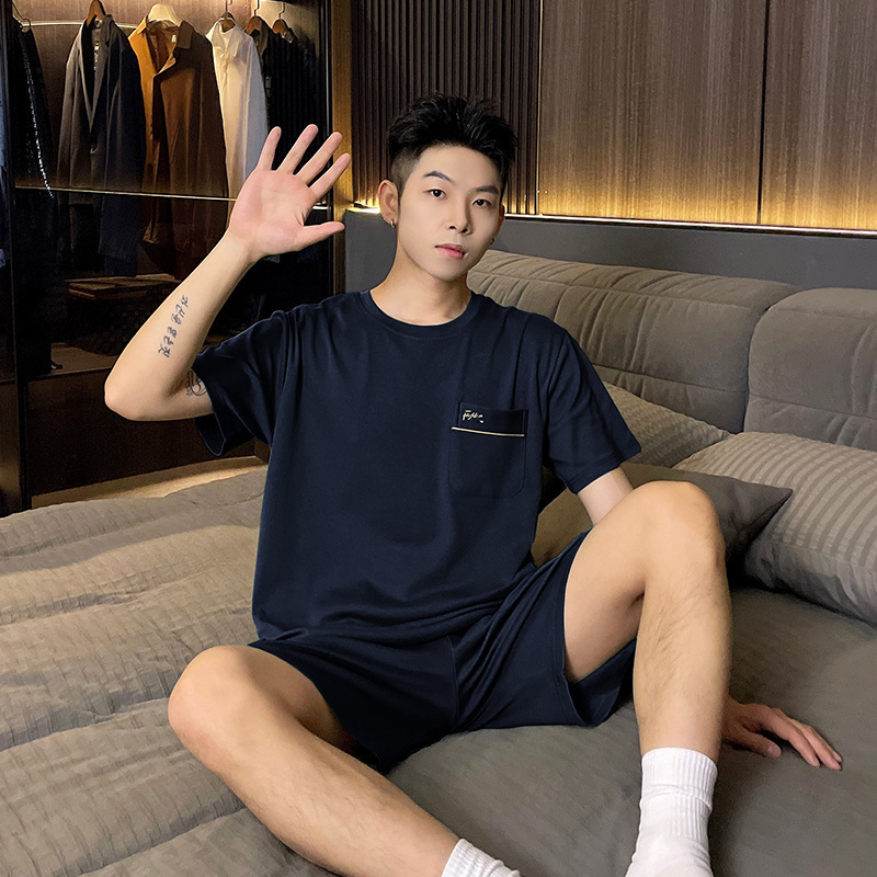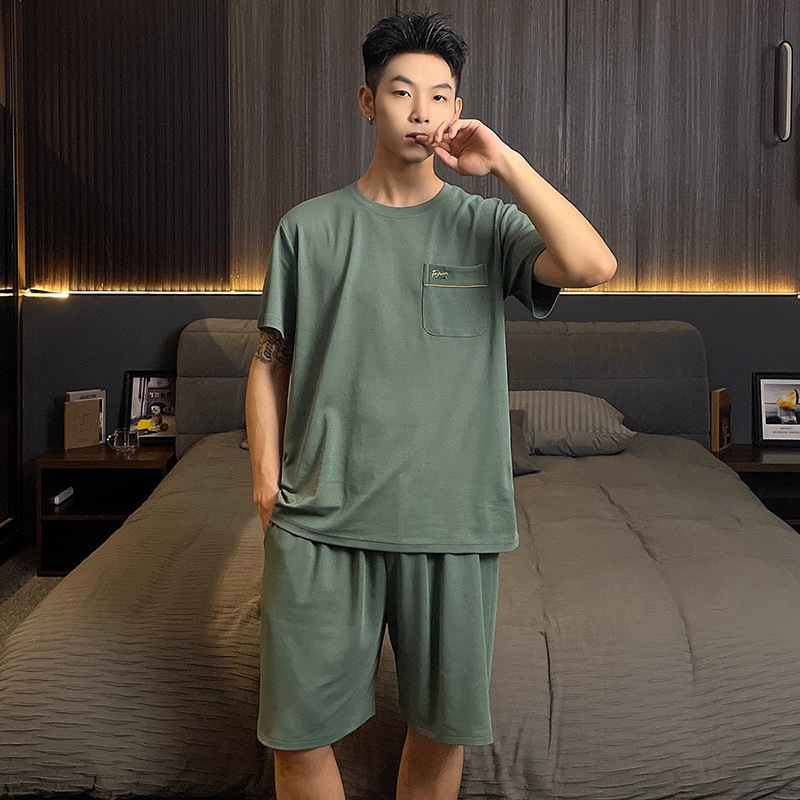 纯棉男士睡衣套装家居服宽松短袖短裤全棉可外穿居家服