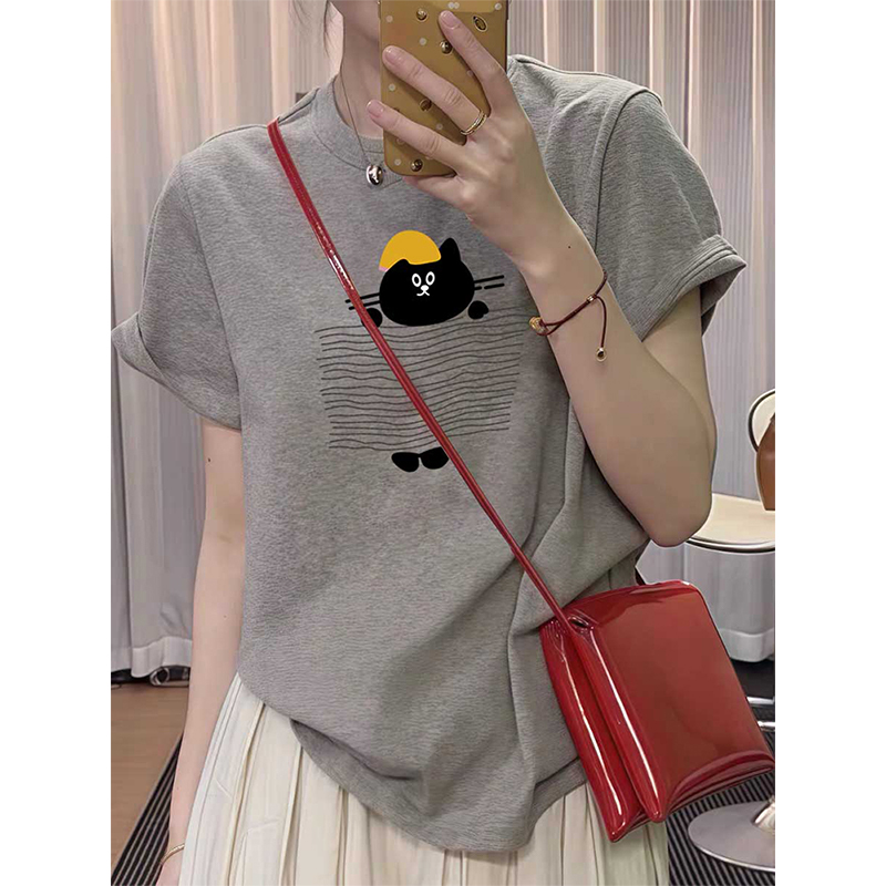 正肩纯棉短袖t恤女士2025新款流行时尚百搭洋气高级灰色上衣夏季
