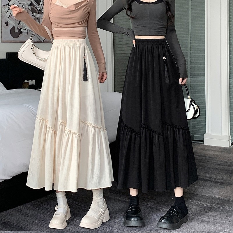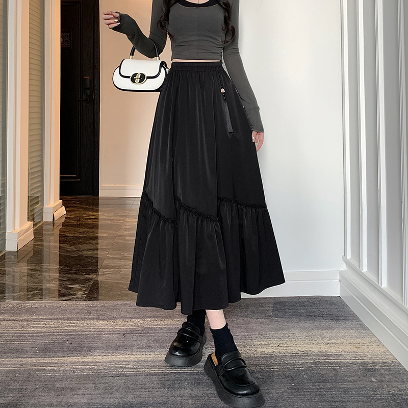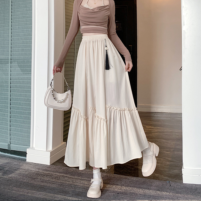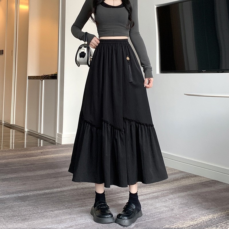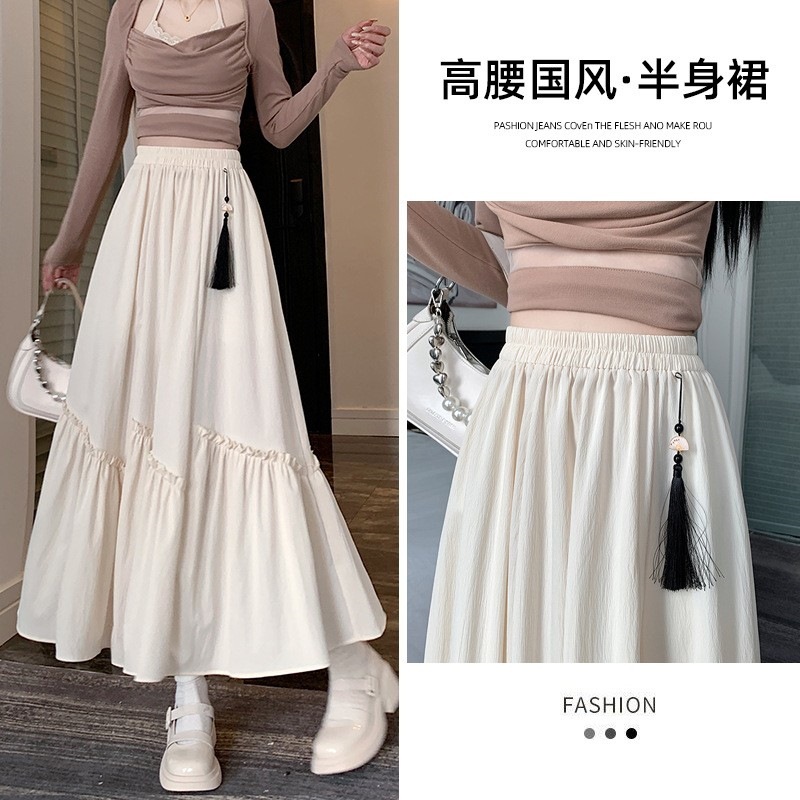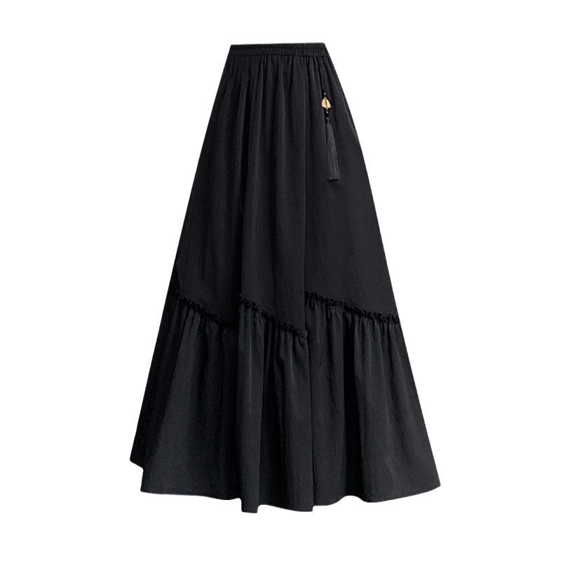 春季高腰复古新中式国风半身裙洋气不规则木耳边拼接a字裙伞裙女