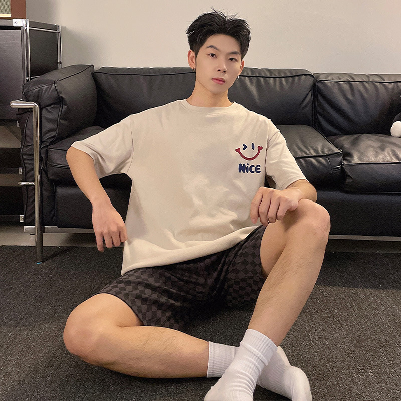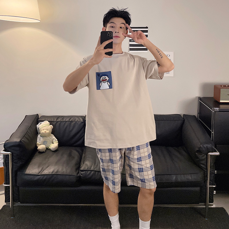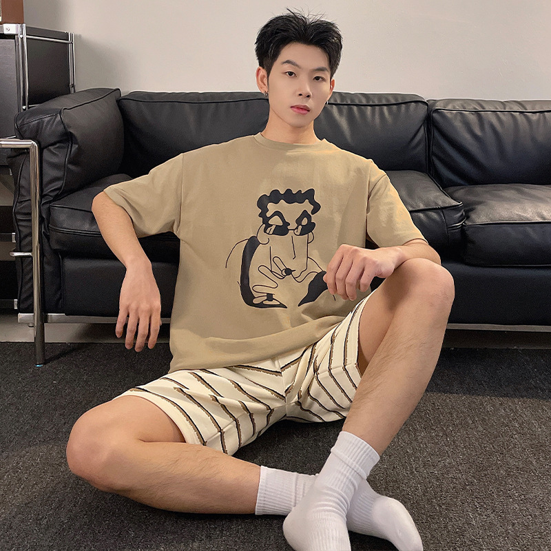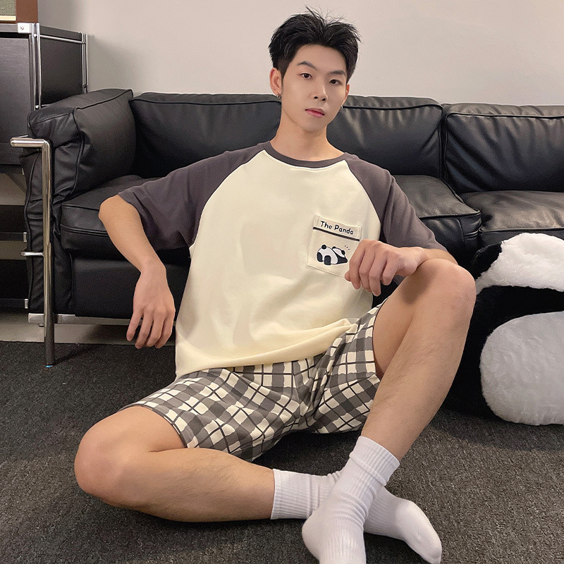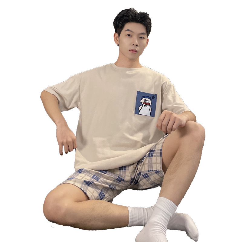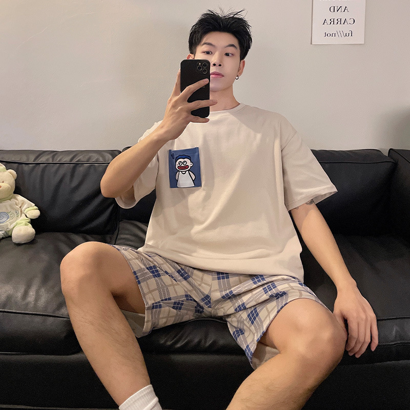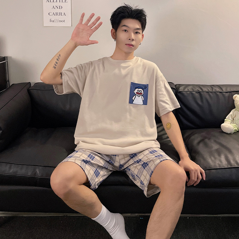 新款纯棉睡衣男夏季薄款短袖青少年夏天可外穿家居服套装全棉
