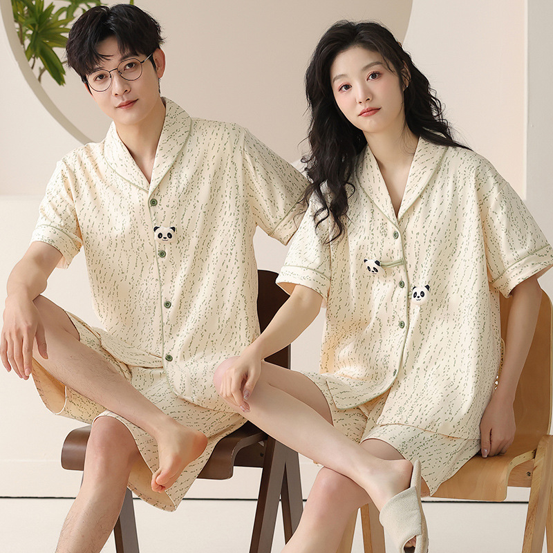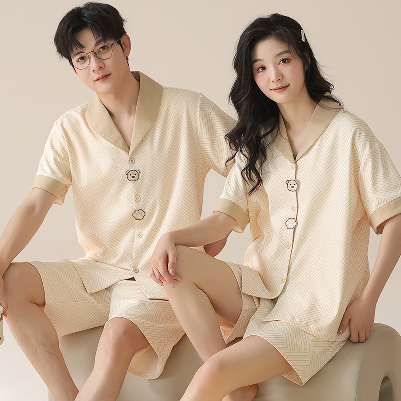 100%纯棉情侣睡衣女夏季薄款短袖短裤男女士全棉家居服套装可外穿