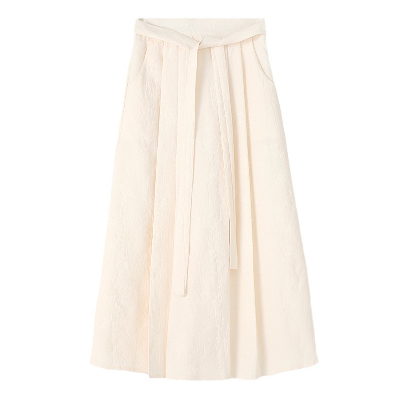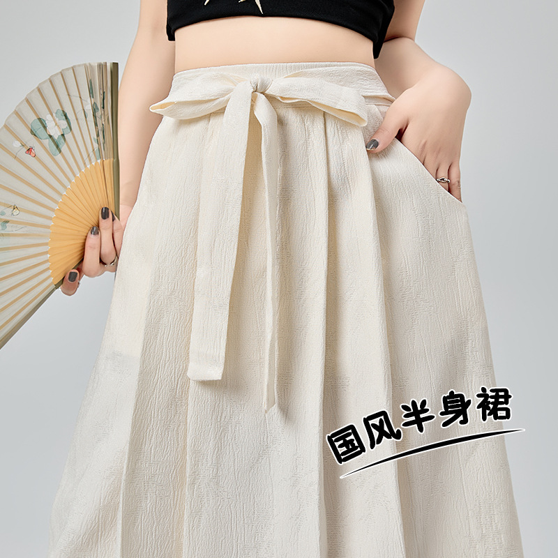 新中式国风提花半身裙女夏系带高腰垂感百褶马面裙中长款A字伞裙