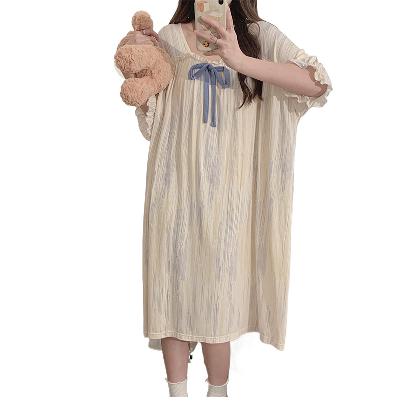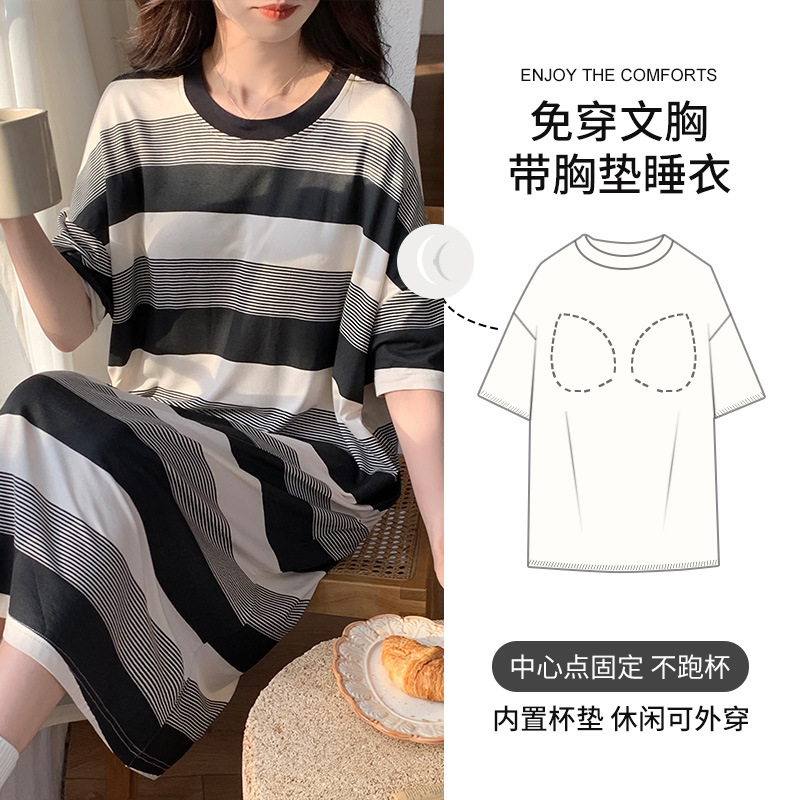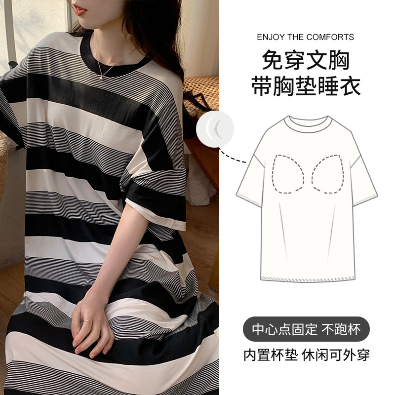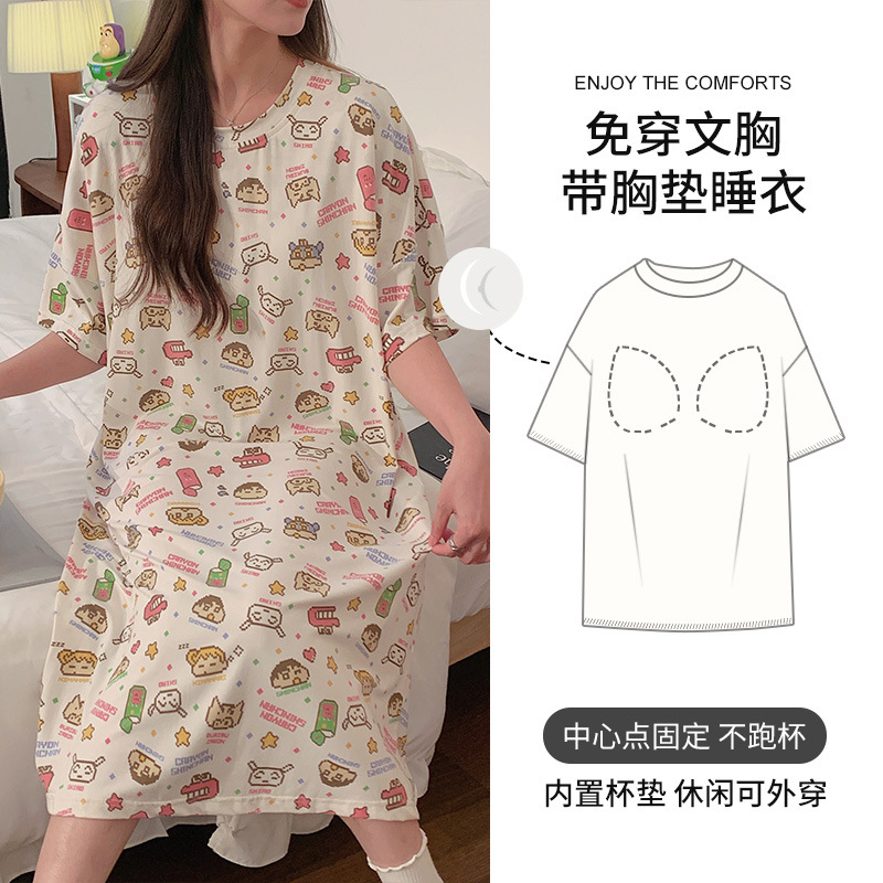 莫代尔冰丝睡衣女款夏季自带胸垫一体式新款短袖孕妇睡裙夏天