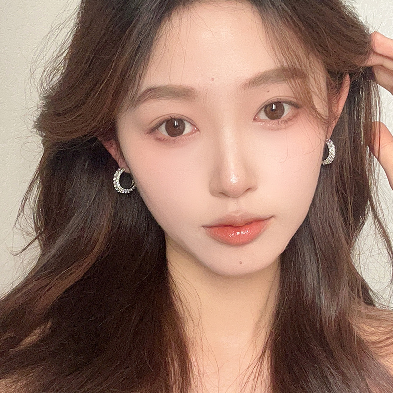 ins小众冷淡风锆石几何圆圈耳环 气质轻奢爆闪耳扣新款耳饰