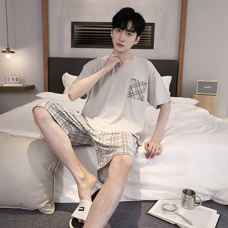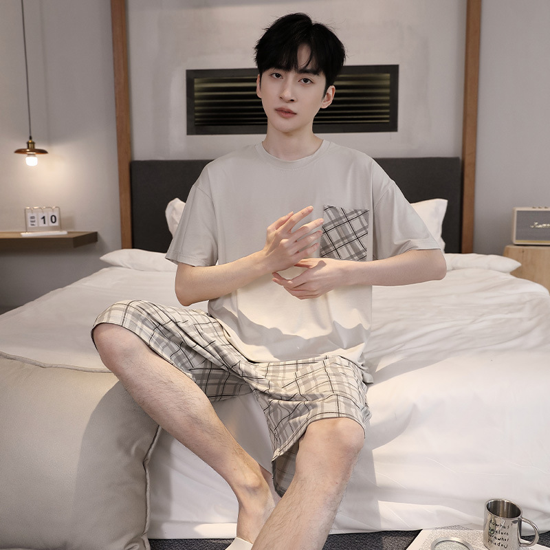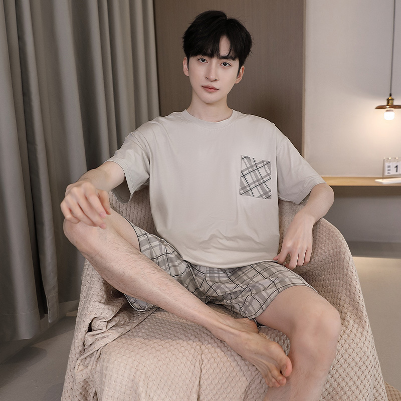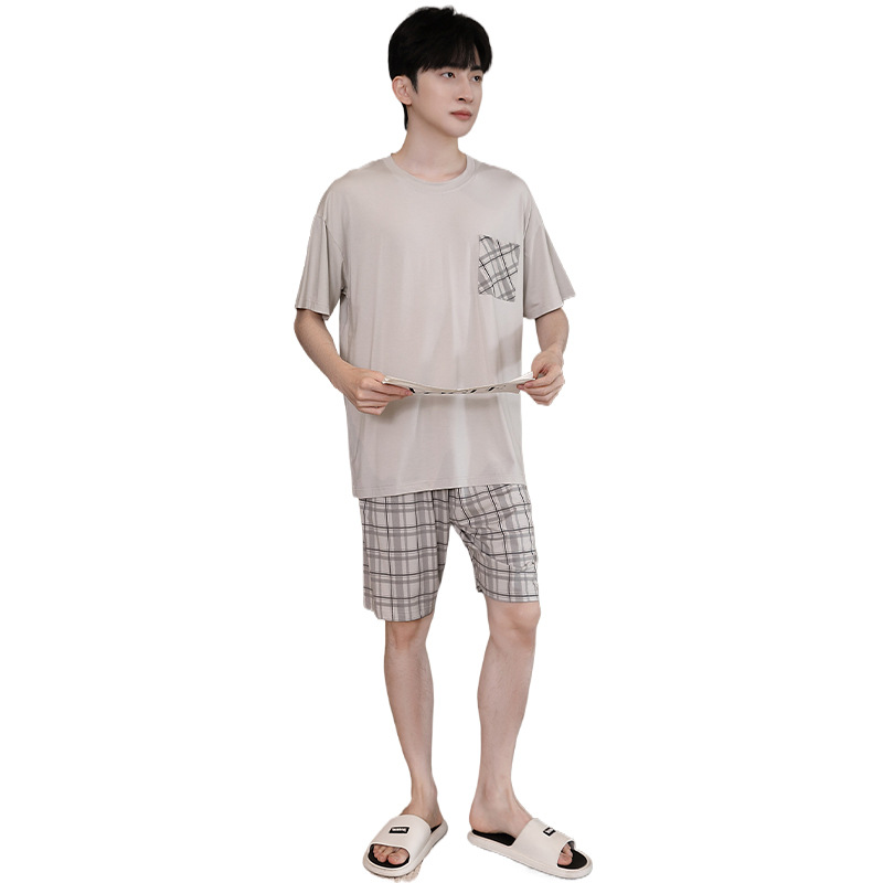 新款睡衣男士夏季莫代尔套头短袖短裤家居服男款夏天薄款套装