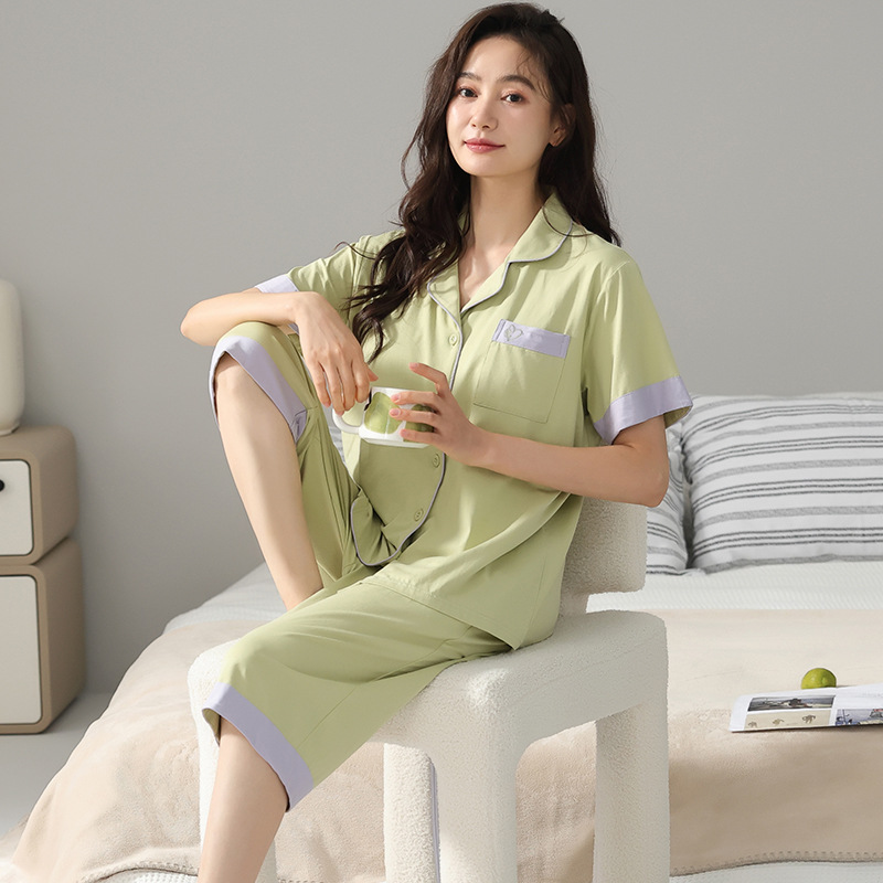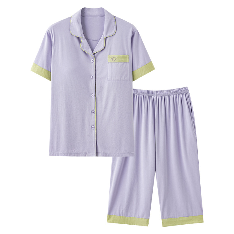 睡衣女夏季莫代尔短袖家居服加肥加大码200斤七分裤薄款女士套装