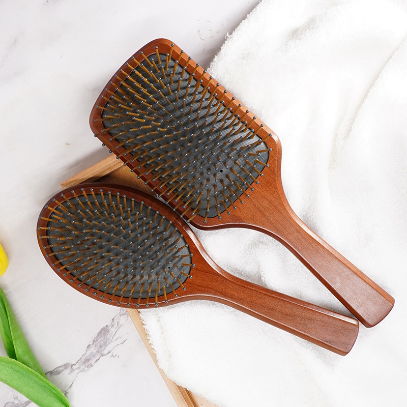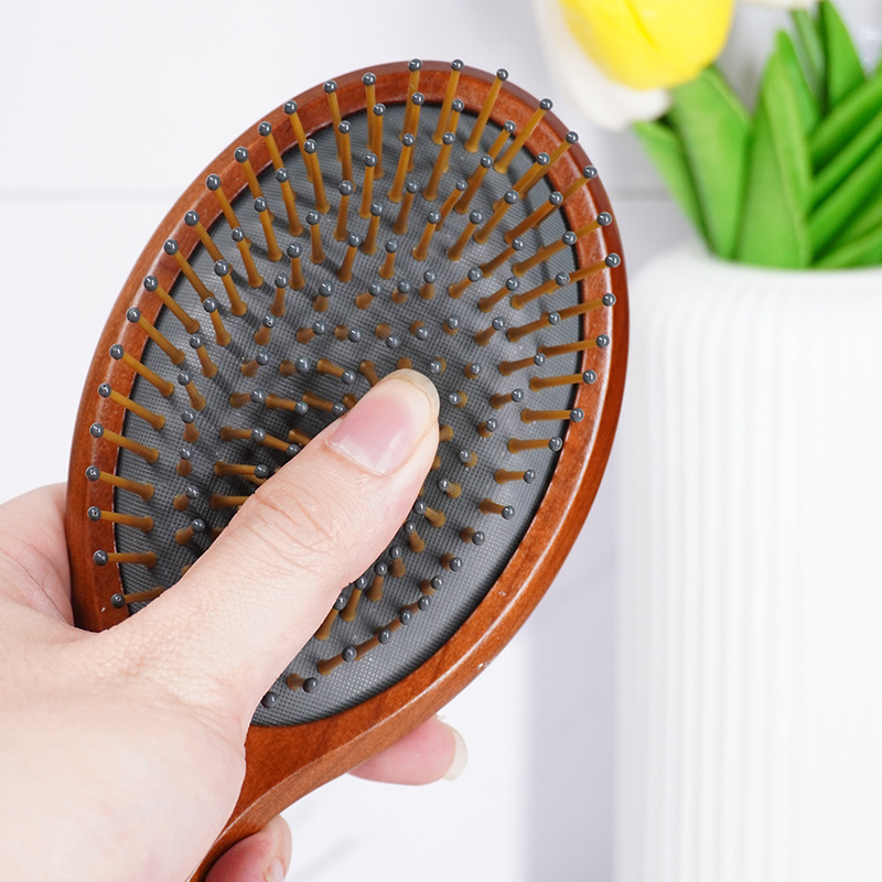 红樱桃木顺直发按摩气垫梳光滑梳齿舒适美发气囊梳子