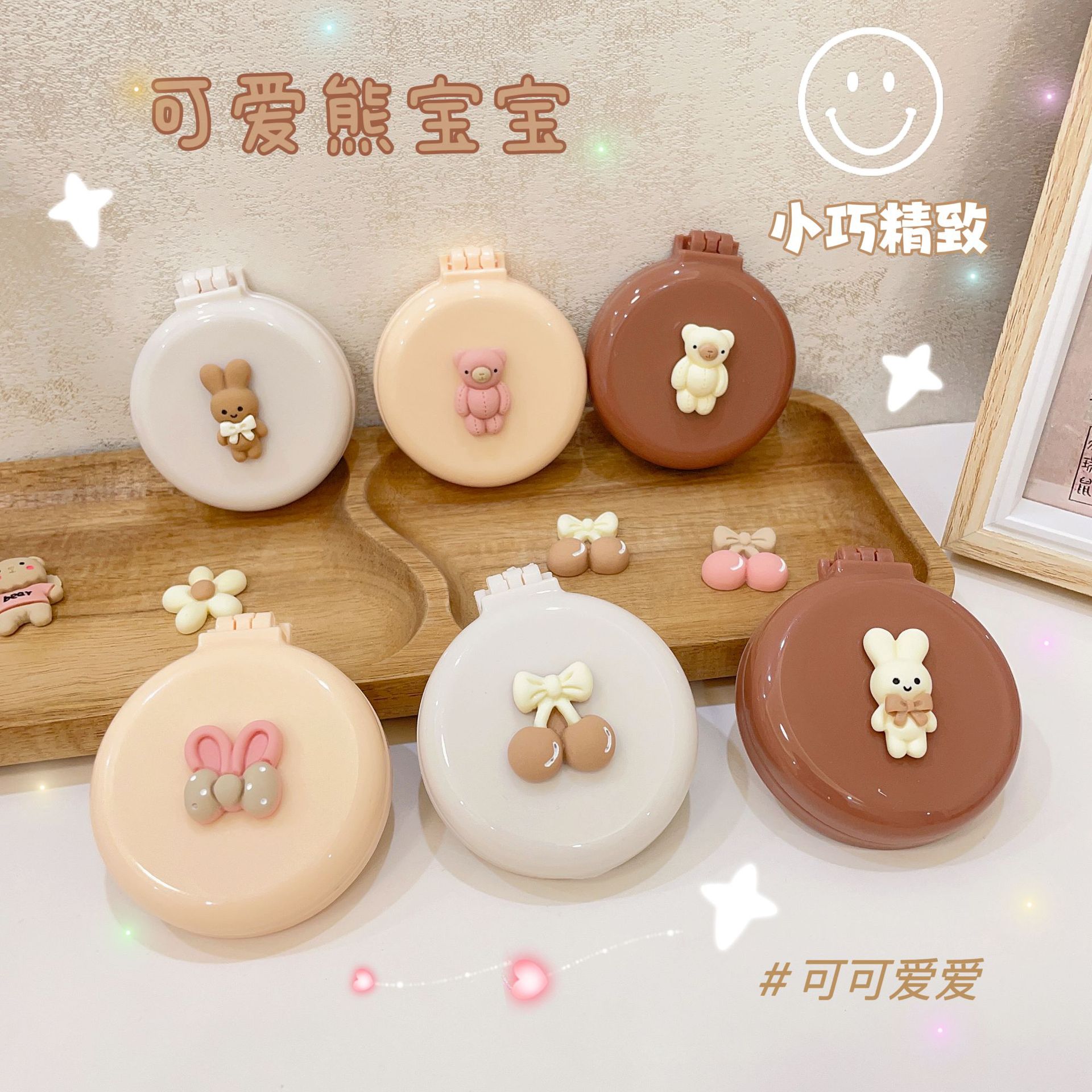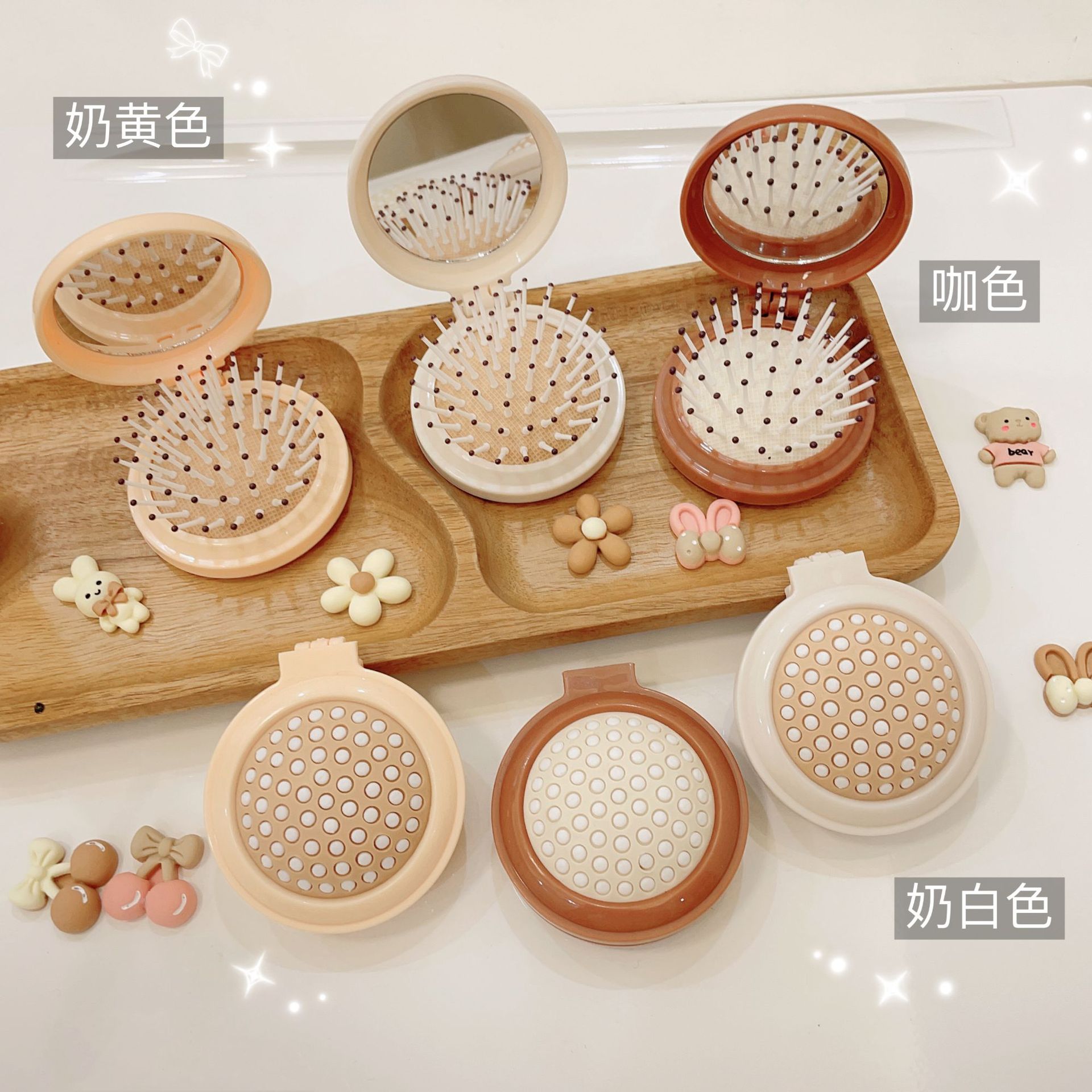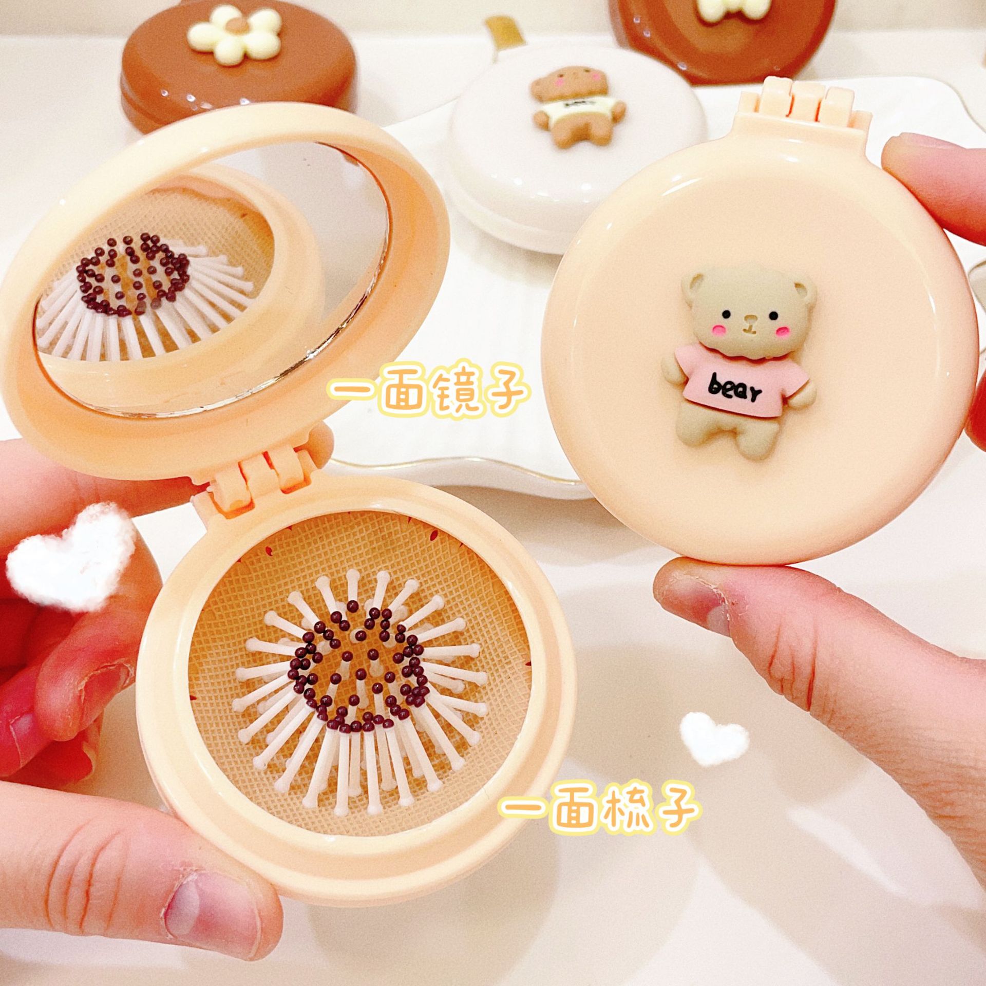 可爱折叠气囊梳按摩梳镜子一体儿童便携随身迷你气垫梳女生小梳子