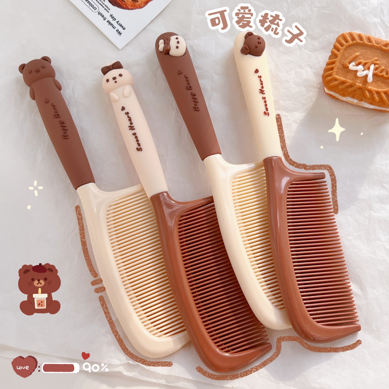 可爱直发梳卡通女童细齿顺发梳家用女士长发专用学生少女美发梳子
