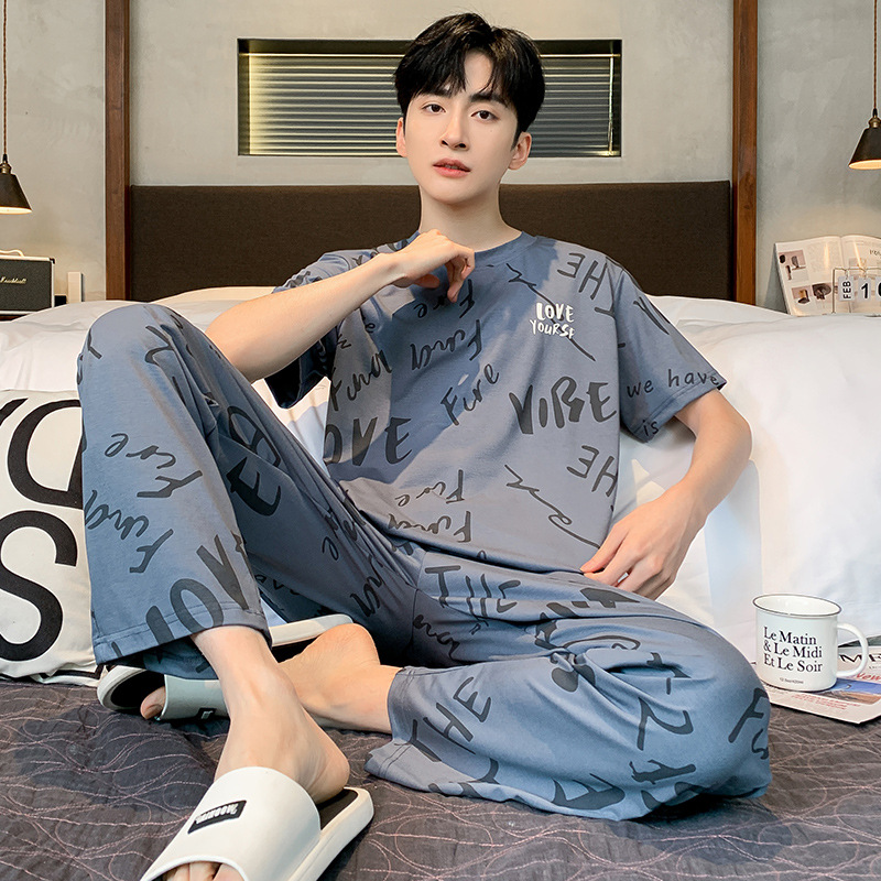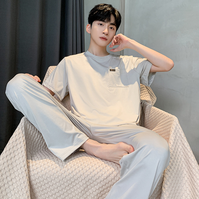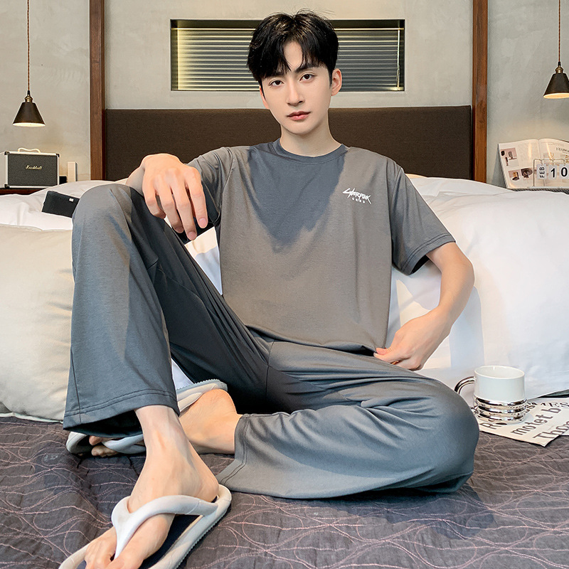 春夏季莫代尔男士睡衣短袖长裤薄款套头凉感厂家批发家居服套装夏