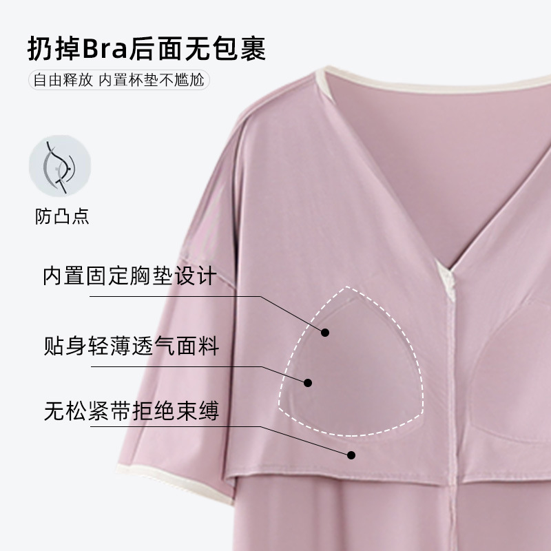 夏季睡衣女士莫代尔棉自带胸垫短袖睡裙休闲可外穿连衣裙