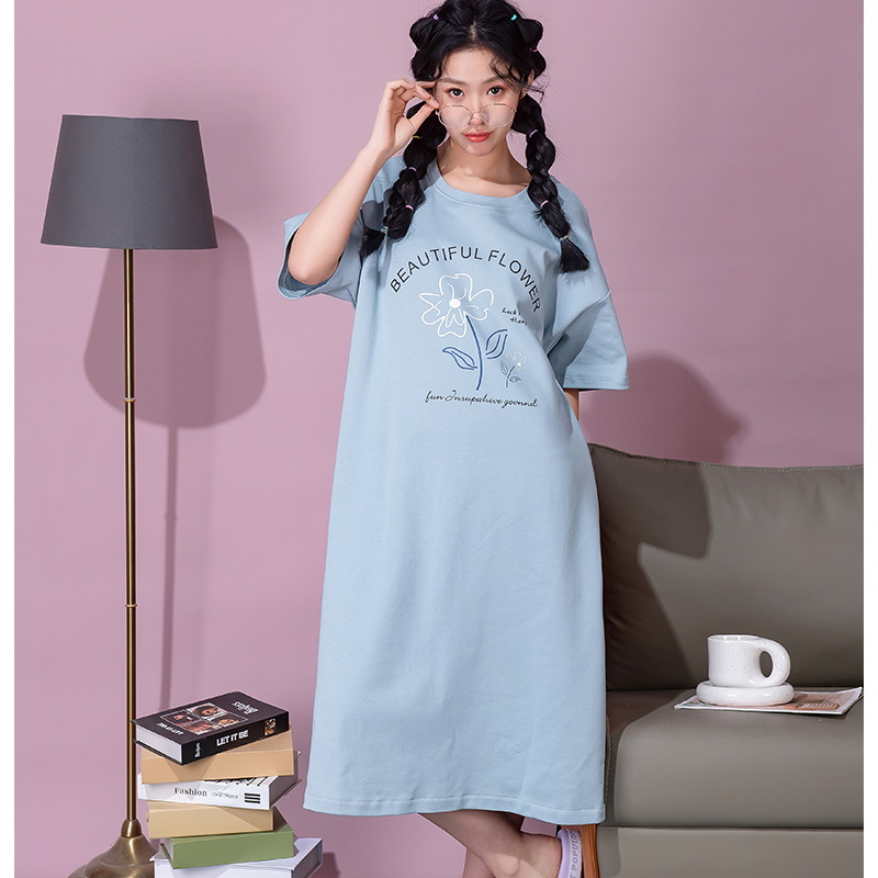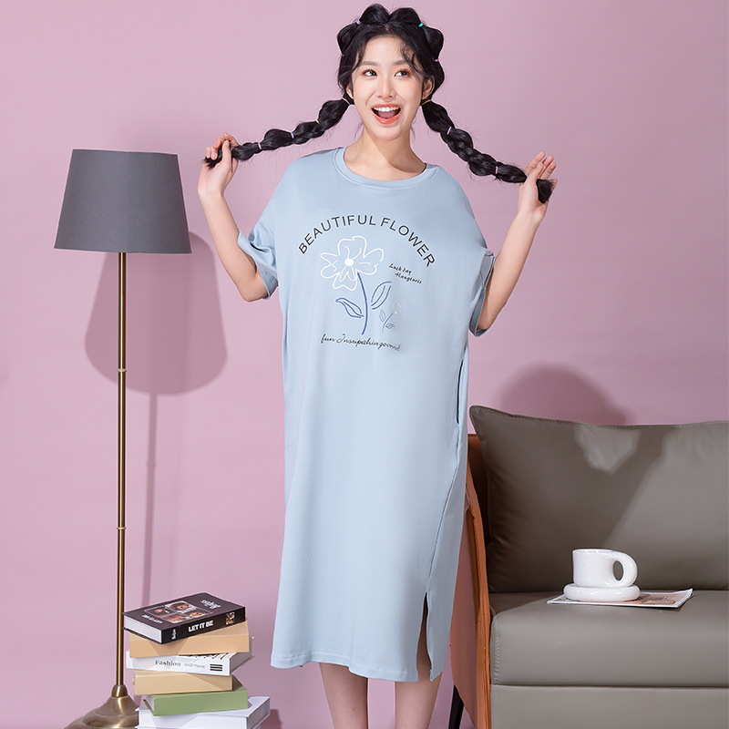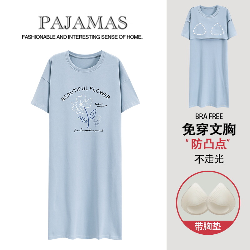 夏薄款睡裙女莫代尔带胸垫短袖可外穿中长款睡衣韩版加大码家居服